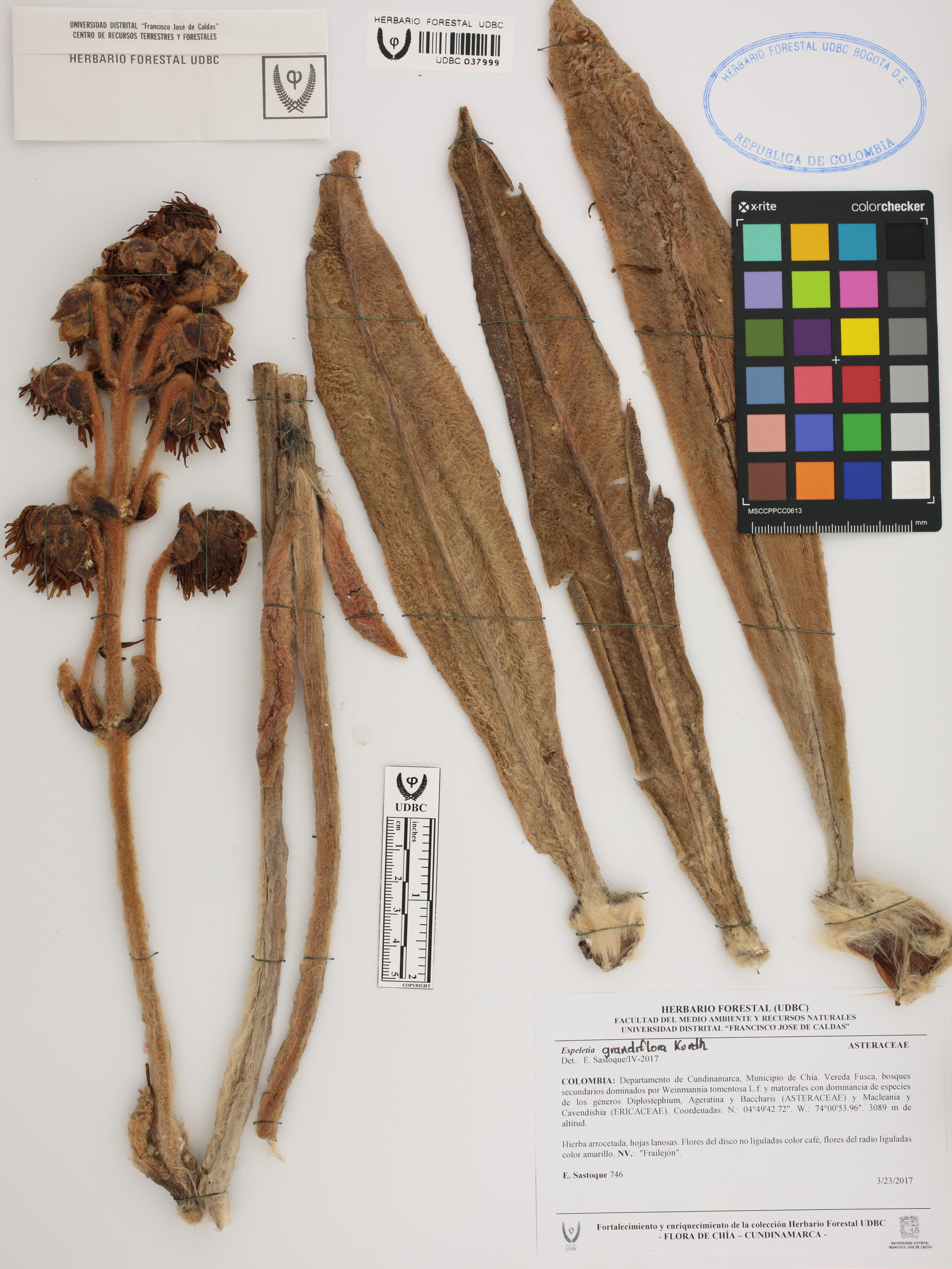 Fotografía del ejemplar Sastoque, E. 746, determinado como Espeletia grandiflora en el año 2017