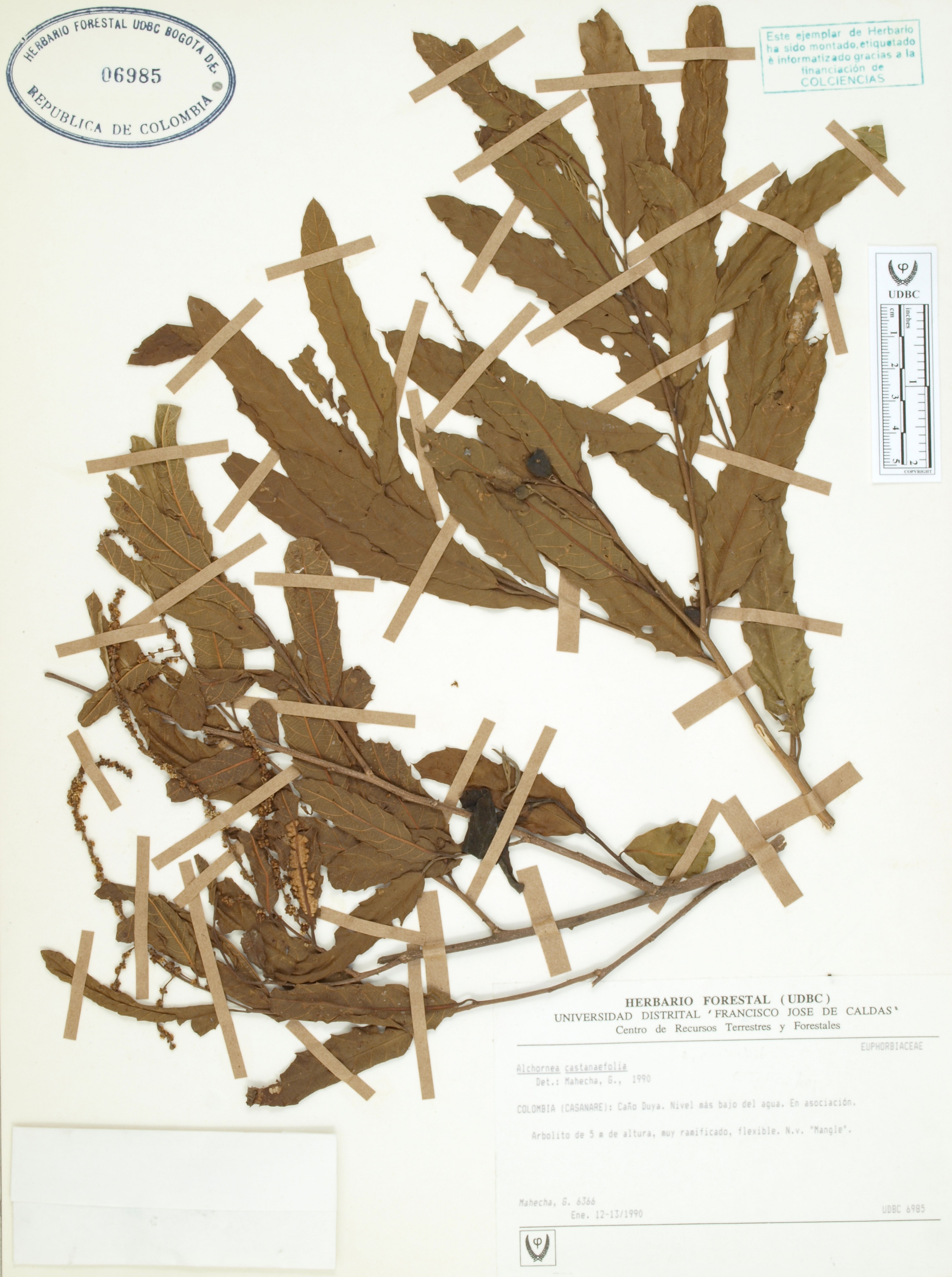 Fotografía del ejemplar Mahecha, G. 6366, determinado como Alchornea castaneifolia