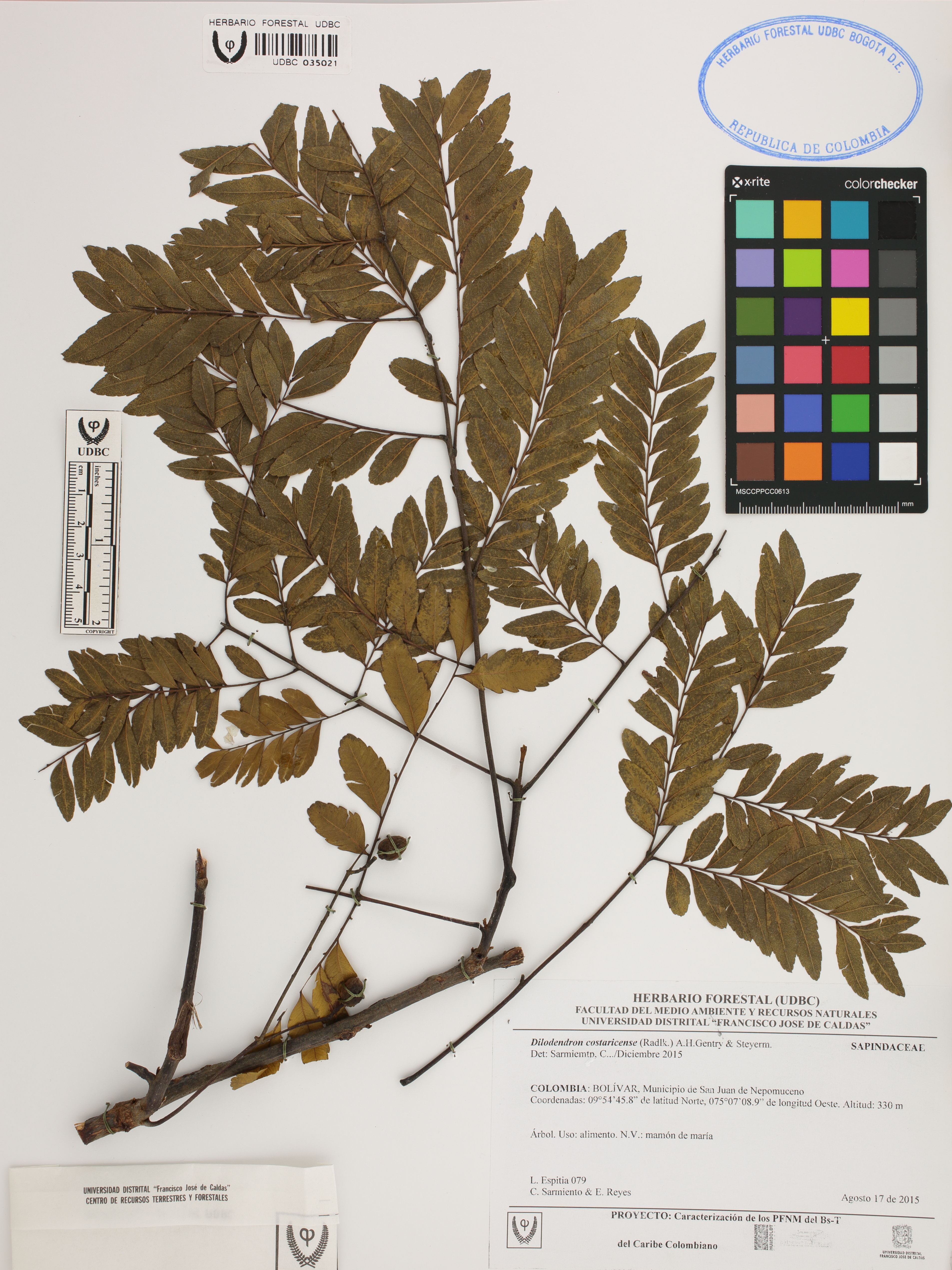 Fotografía del ejemplar Espitia, L. 79, determinado como Dilodendron costaricense en el año 2015