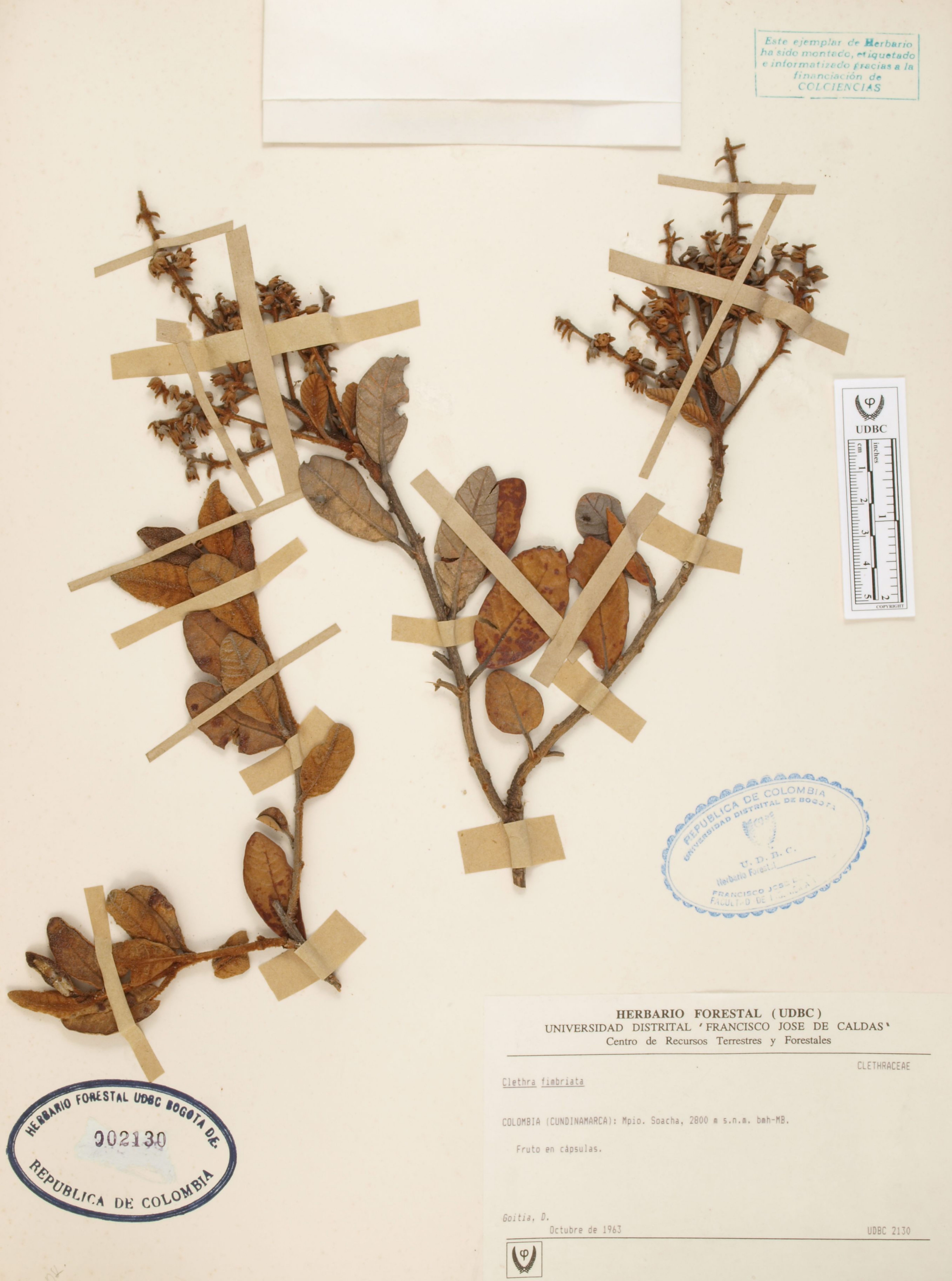 Fotografía del ejemplar Goitia, D., determinado como Clethra fimbriata