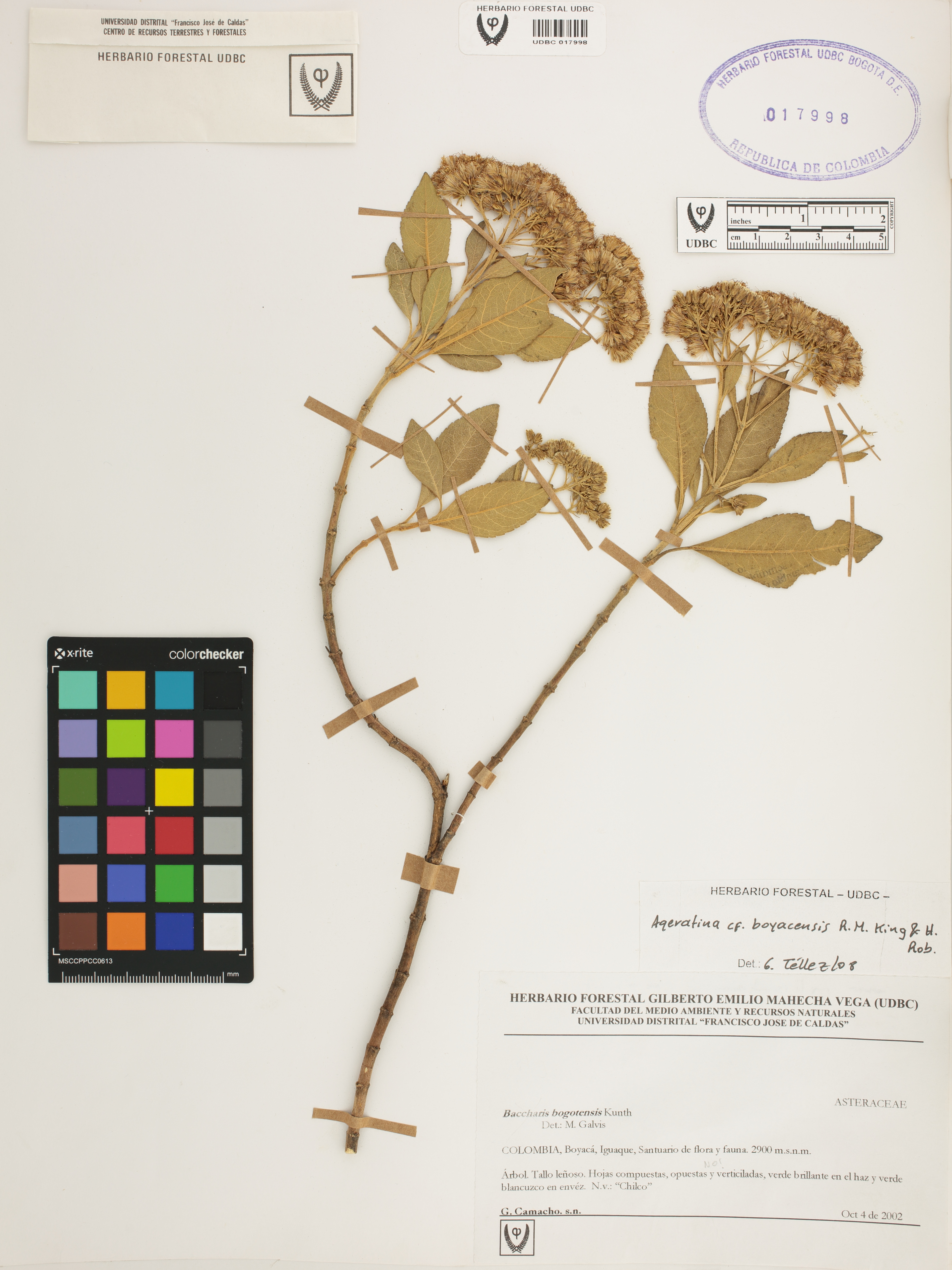 Fotografía del ejemplar Camacho, G., determinado como Ageratina boyacensis en el año 2008