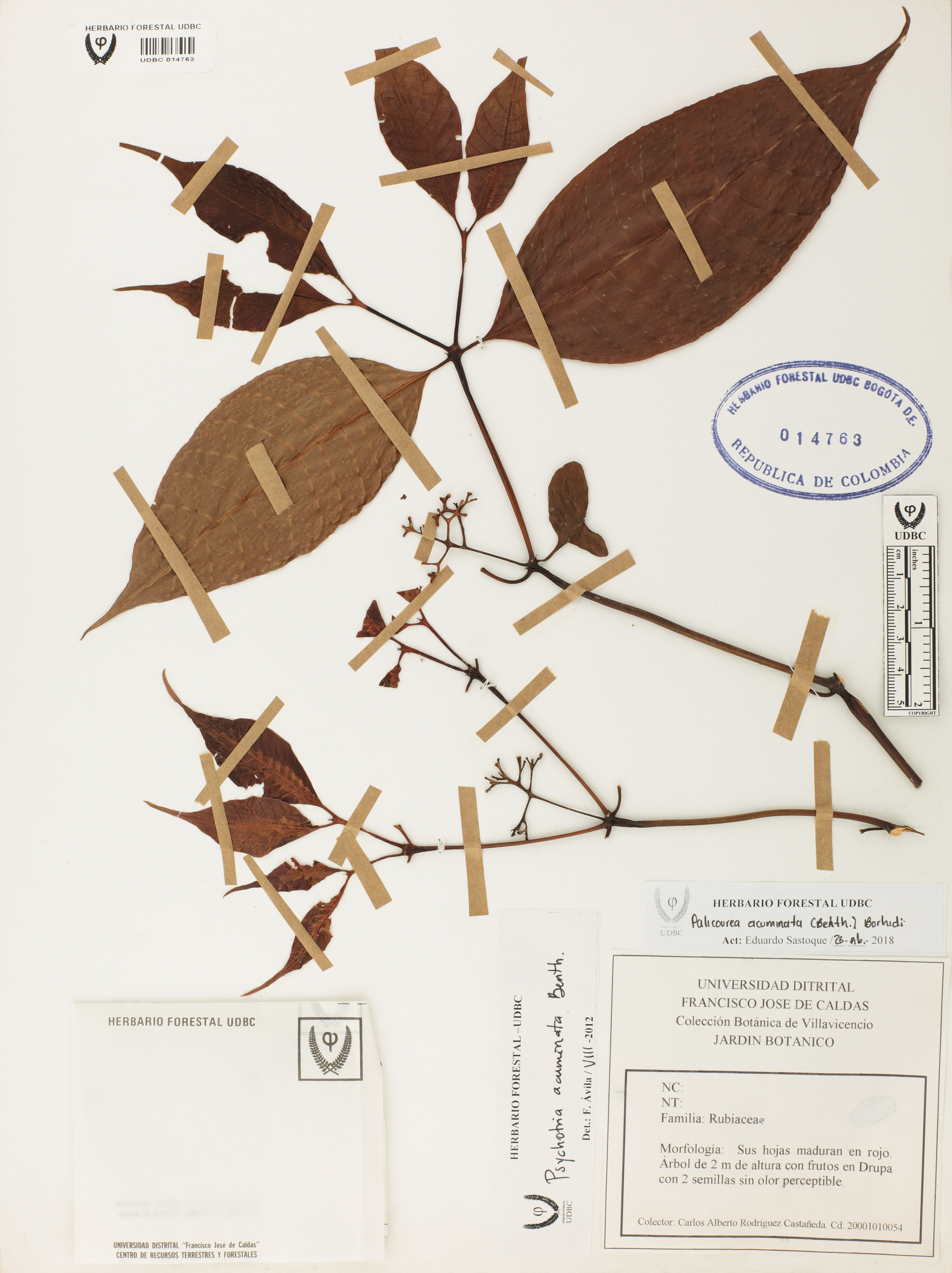 Fotografía del ejemplar Rodríguez, C., determinado como Palicourea acuminata en el año 2012