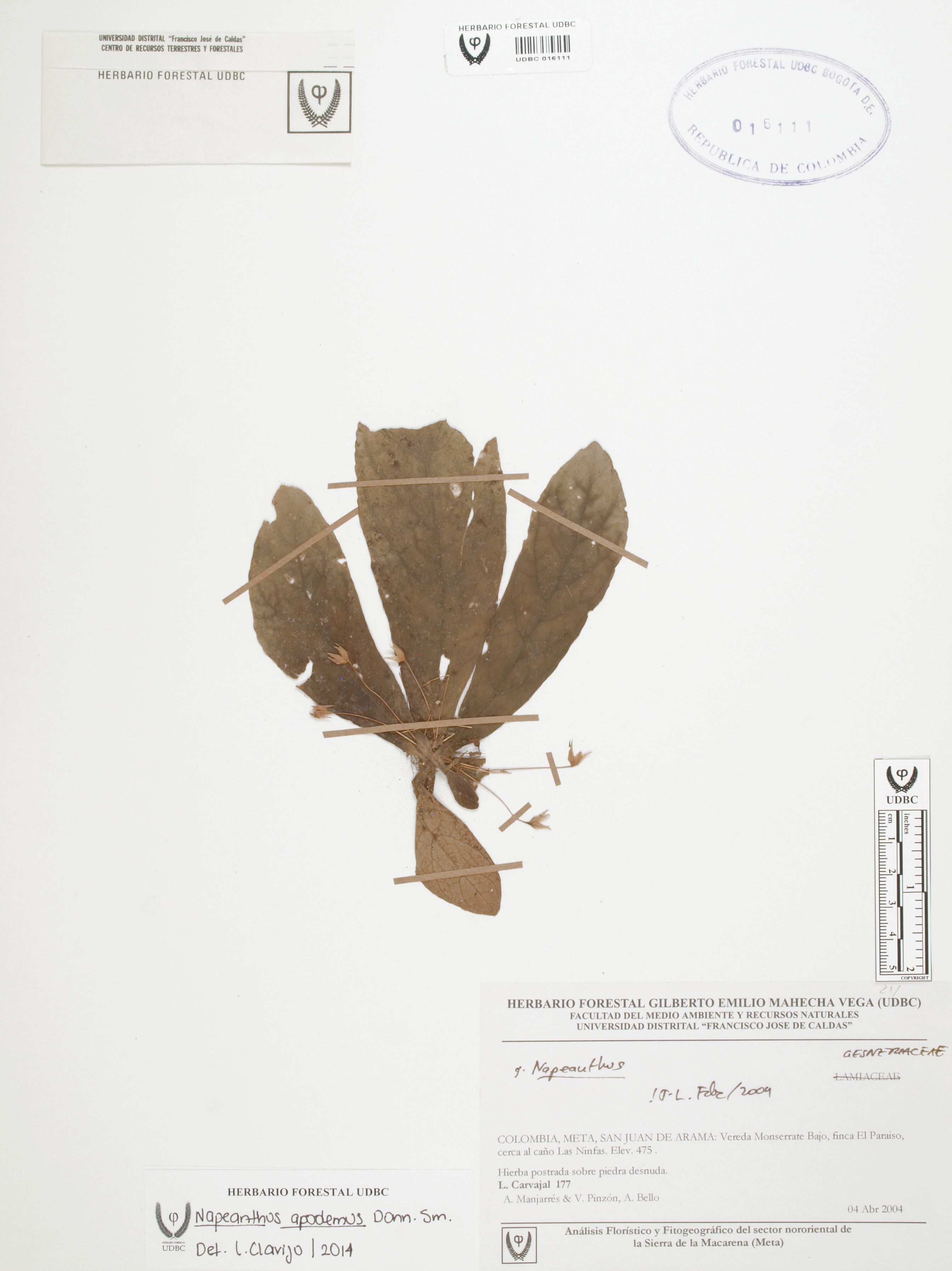 Fotografía del ejemplar Carvajal, L. 177, determinado como Napeanthus apodemus en el año 2014