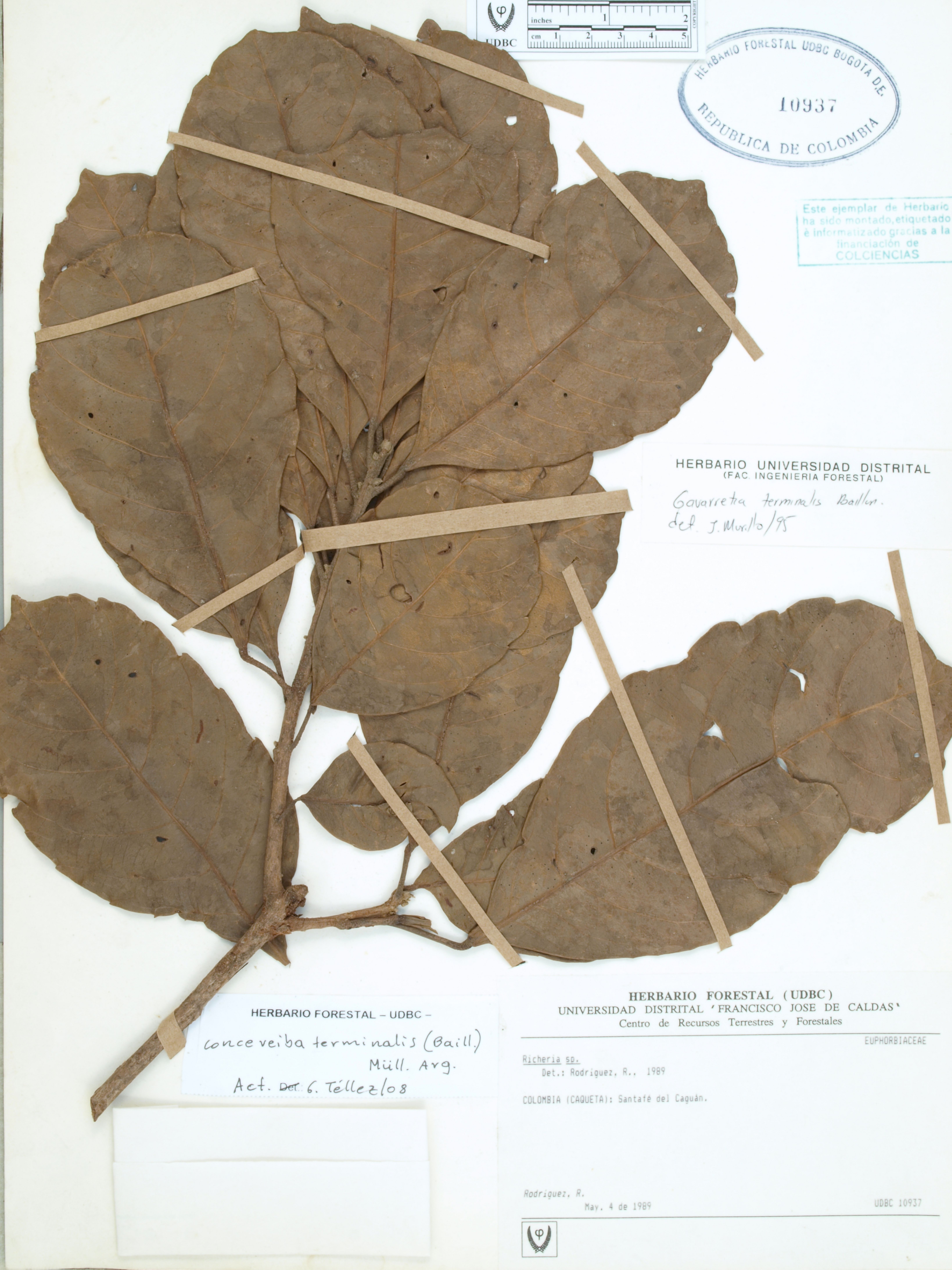Fotografía del ejemplar Rodríguez, R., determinado como Conceveiba terminalis en el año 2008