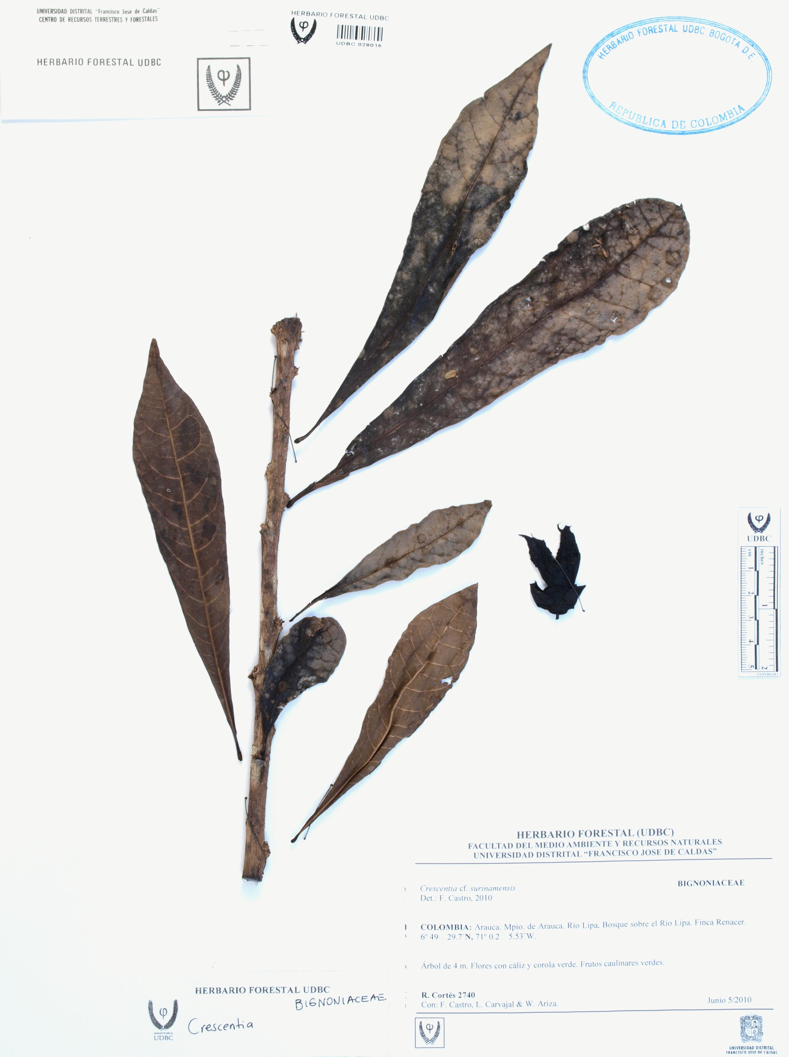 | dc.description | Fotografía del ejemplar Cortés, R. 2740, determinado como Crescentia sp. | |
