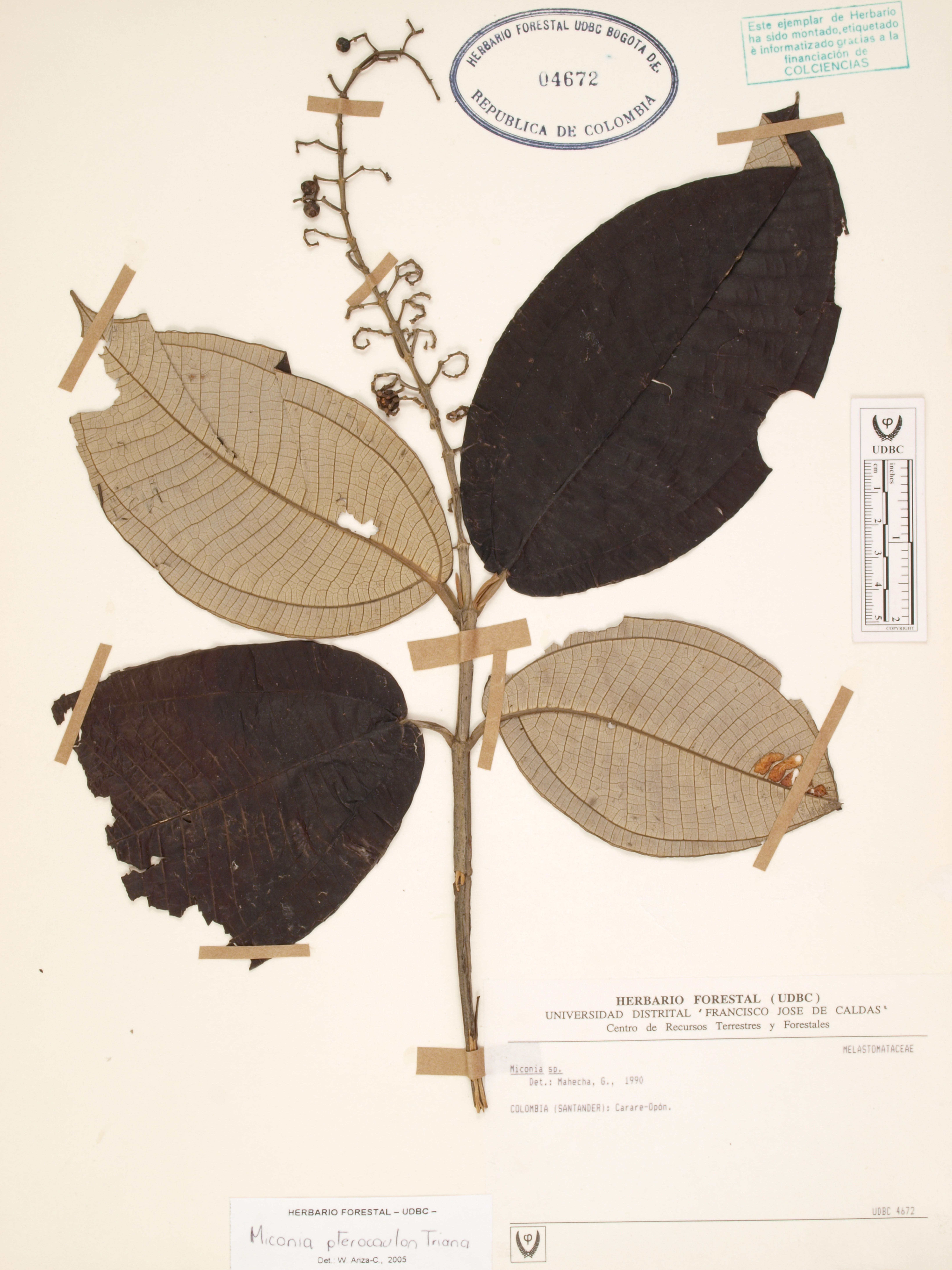 Fotografía del ejemplar SD 1, determinado como Miconia pterocaulon en el año 2005