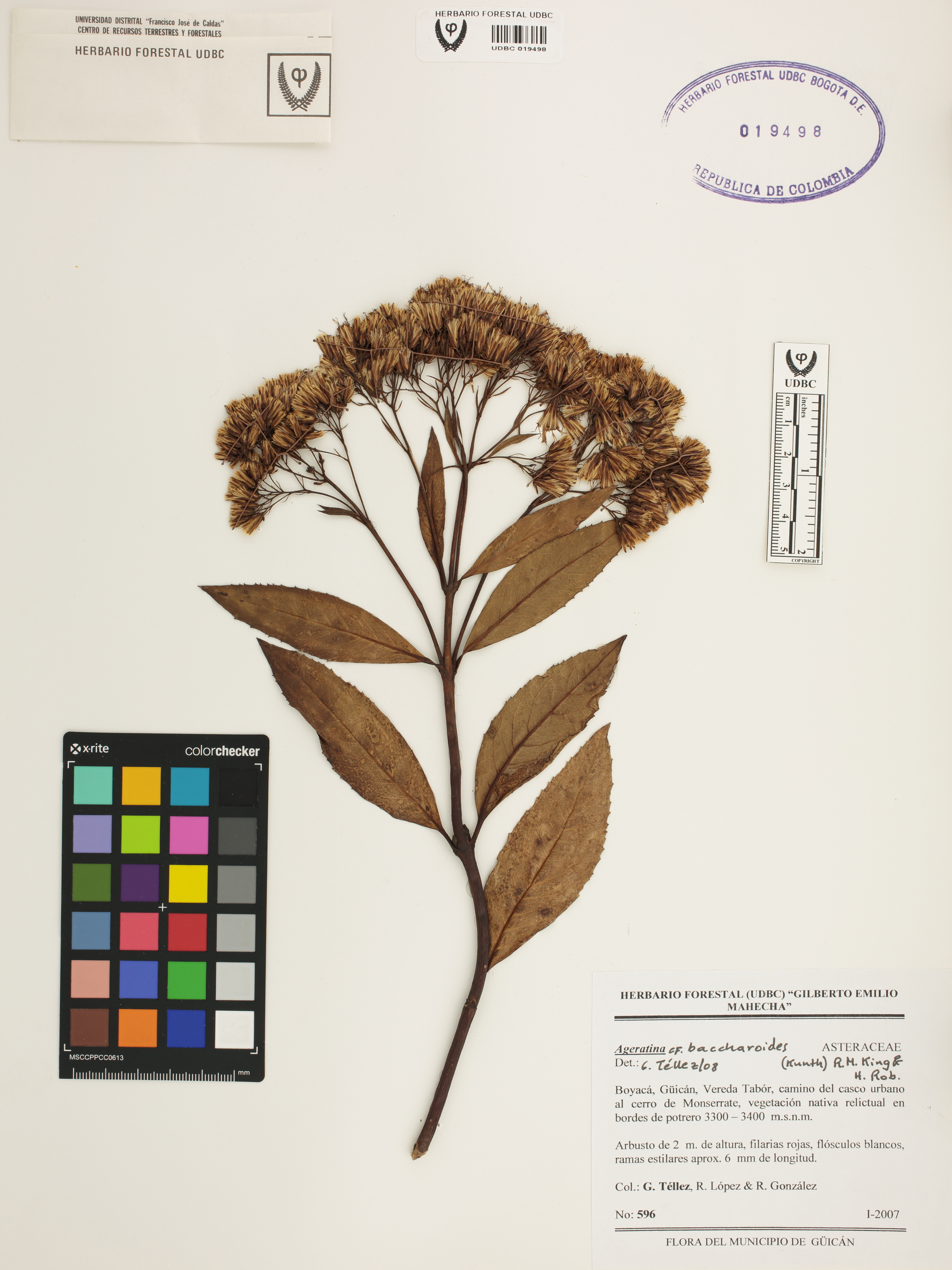 Fotografía del ejemplar Téllez, G. 596, determinado como Ageratina baccharoides en el año 2008