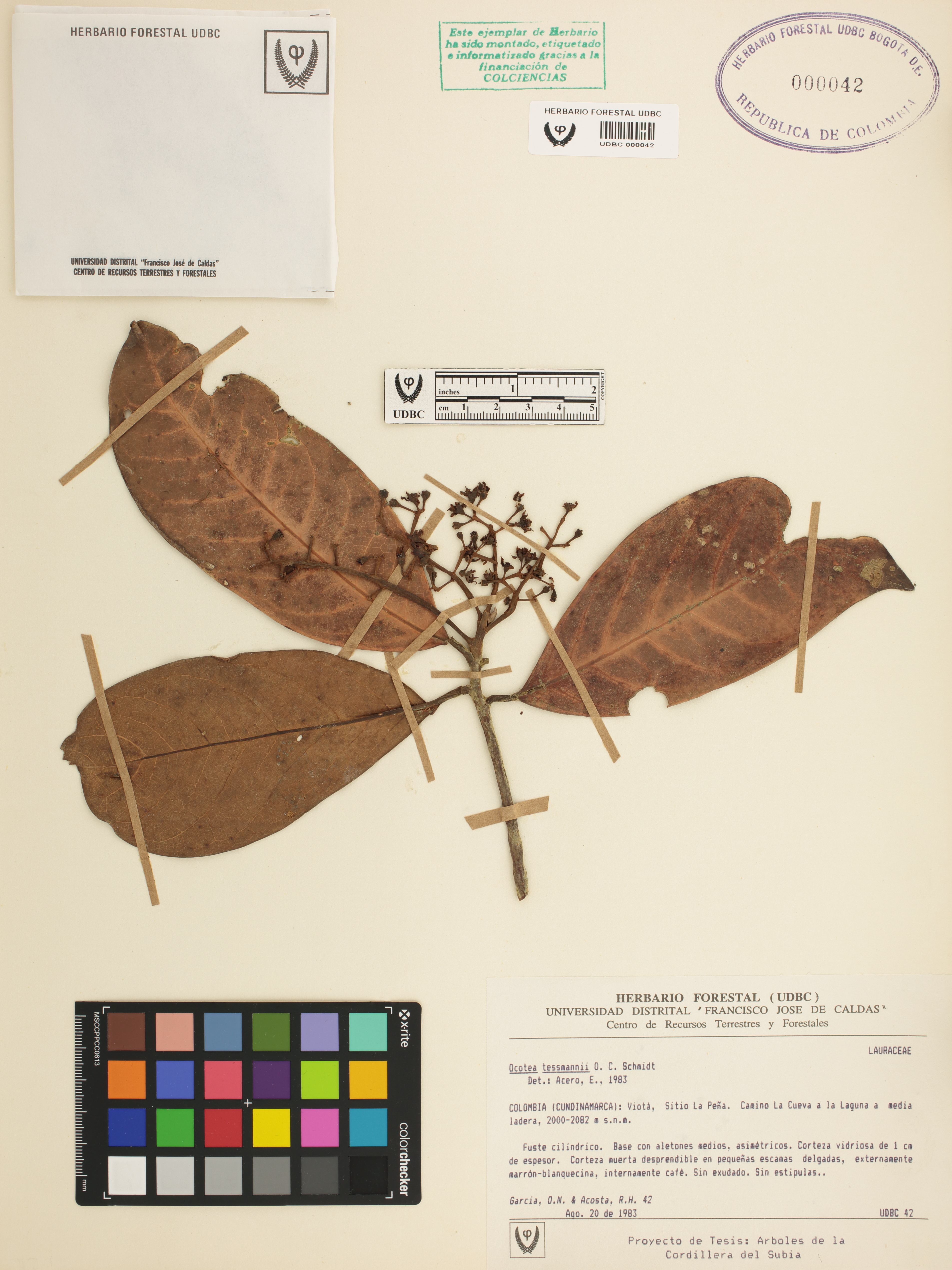 Fotografía del ejemplar García, O. 42, determinado como Aniba sp. en el año 2023
