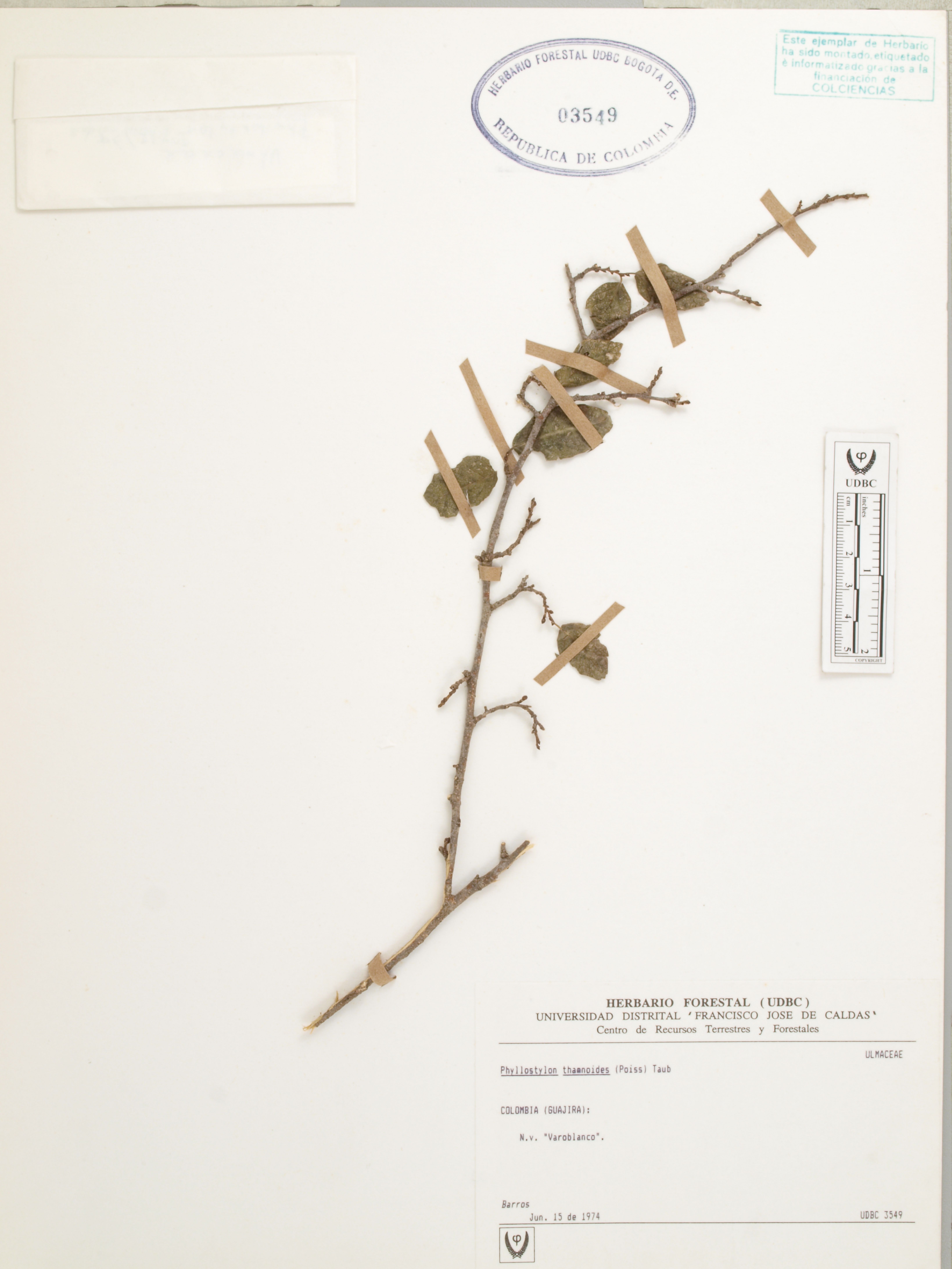 | dc.description | Fotografía del ejemplar Barros, J., determinado como Phyllostylon rhamnoides | |