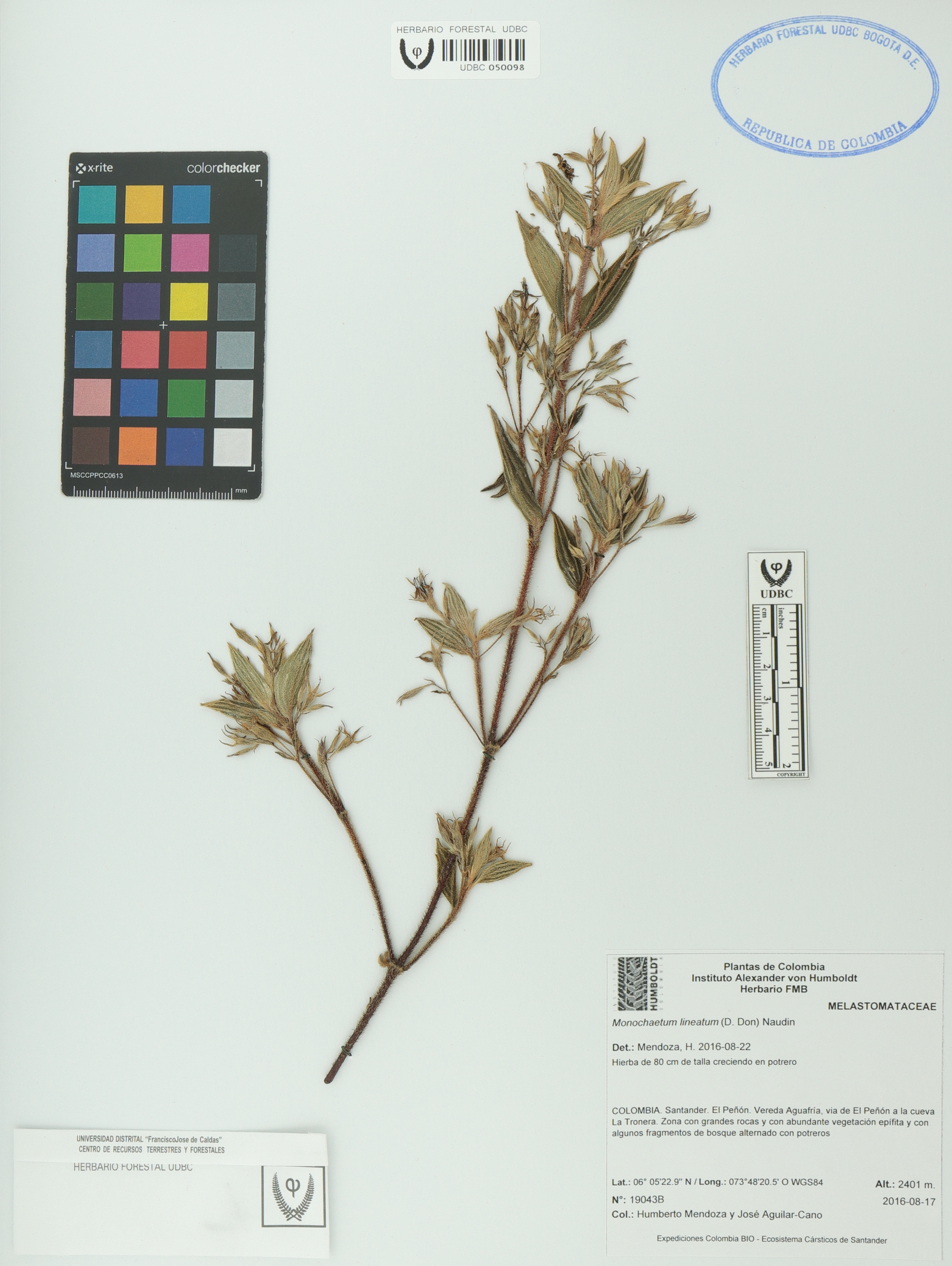 Fotografía del ejemplar Mendoza, H. 19043b, determinado como Monochaetum lineatum en el año 2016