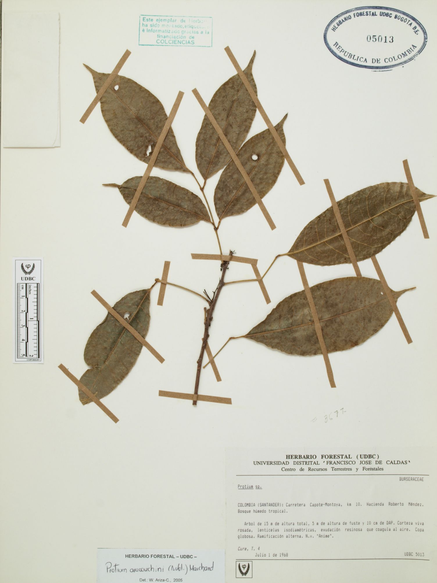 Fotografía del ejemplar Cure, T. 4, determinado como Protium aracouchini en el año 2005