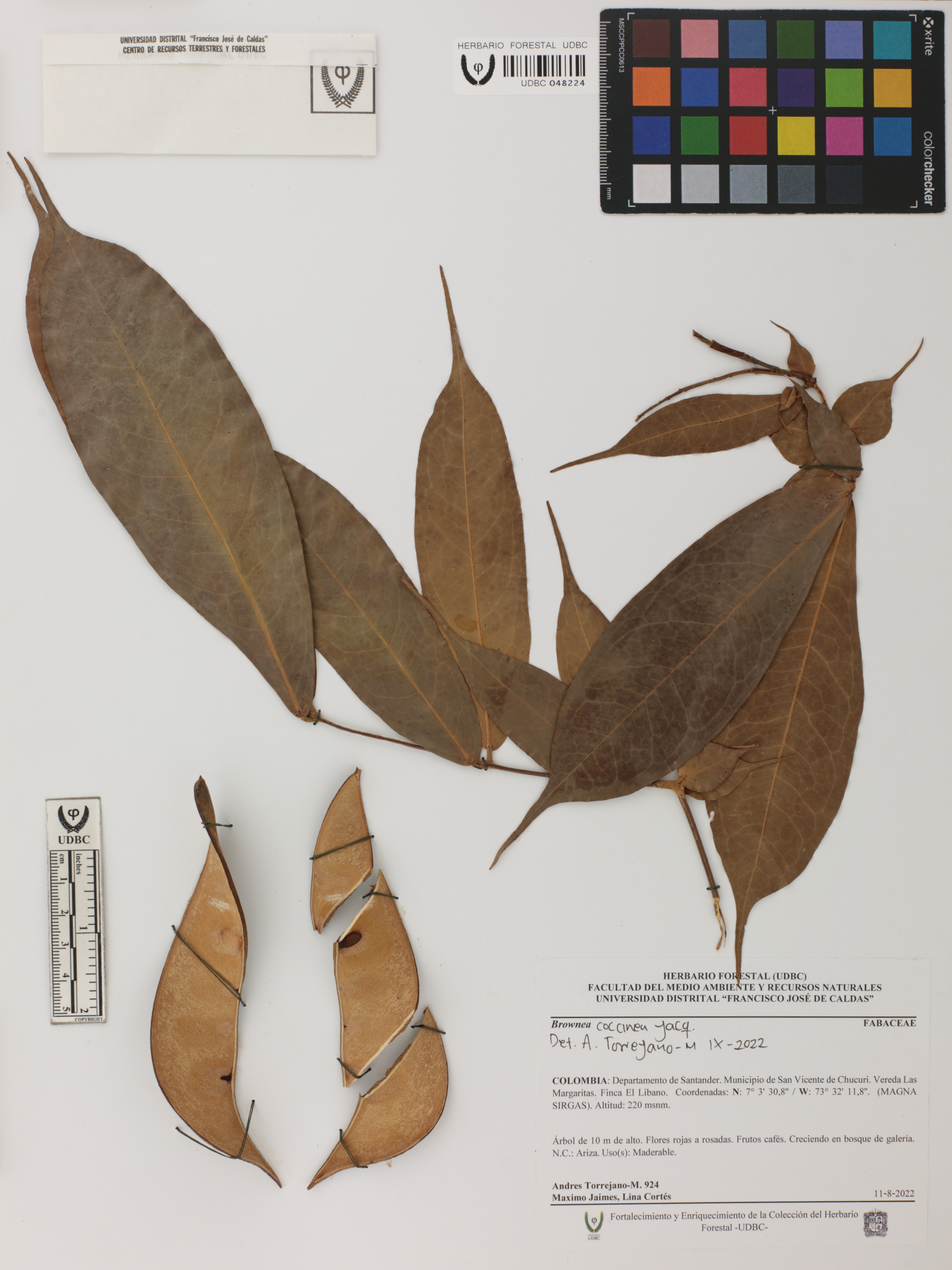 Fotografía del ejemplar Torrejano-M., Andrés 924, determinado como Brownea coccinea en el año 2022