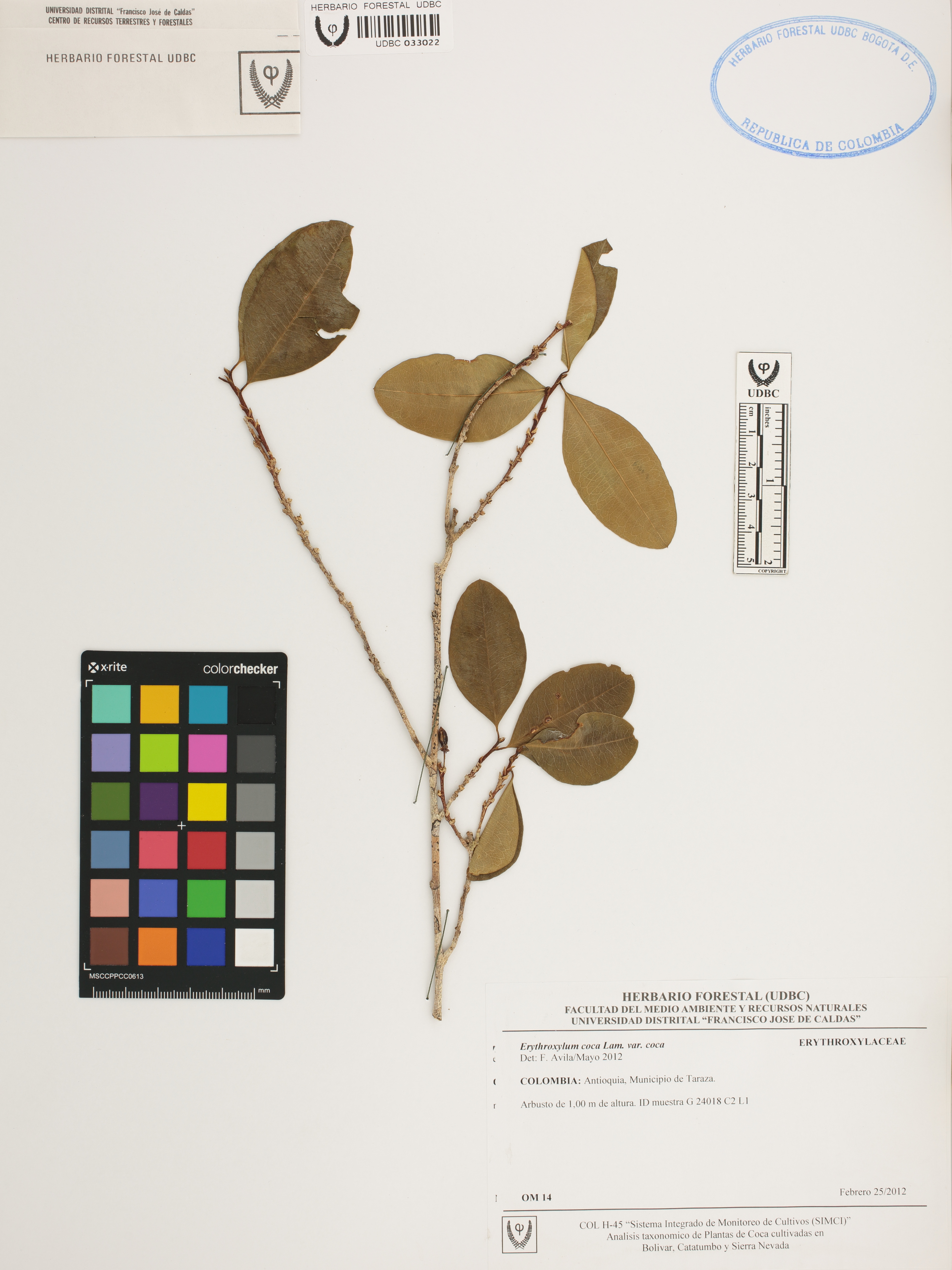 | dc.description | Fotografía del ejemplar SD 14, determinado como Erythroxylum coca var. coca en el año 2012 | |