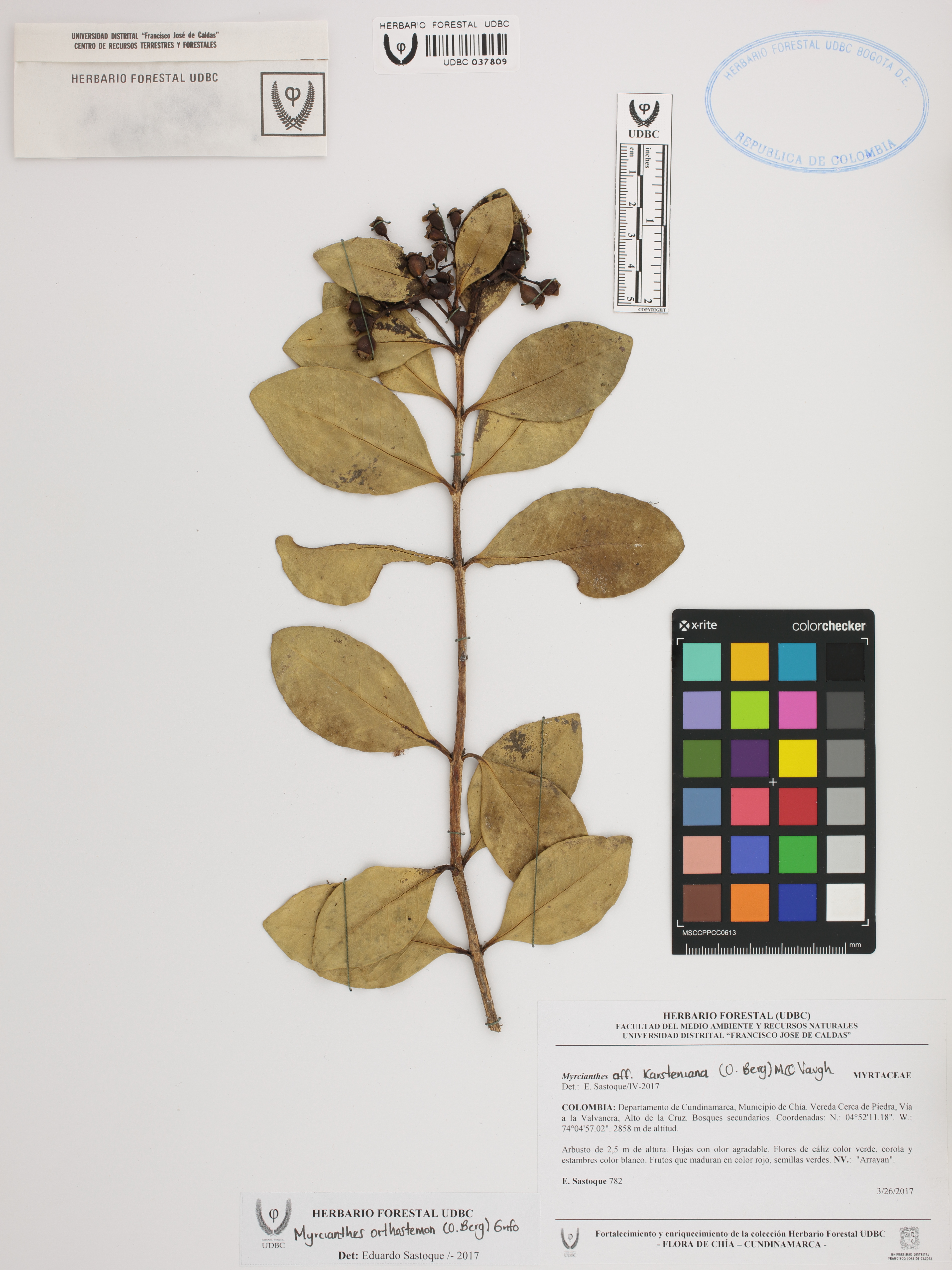 | dc.description | Fotografía del ejemplar Sastoque, E. 782, determinado como Myrcianthes orthostemon en el año 2017 | |