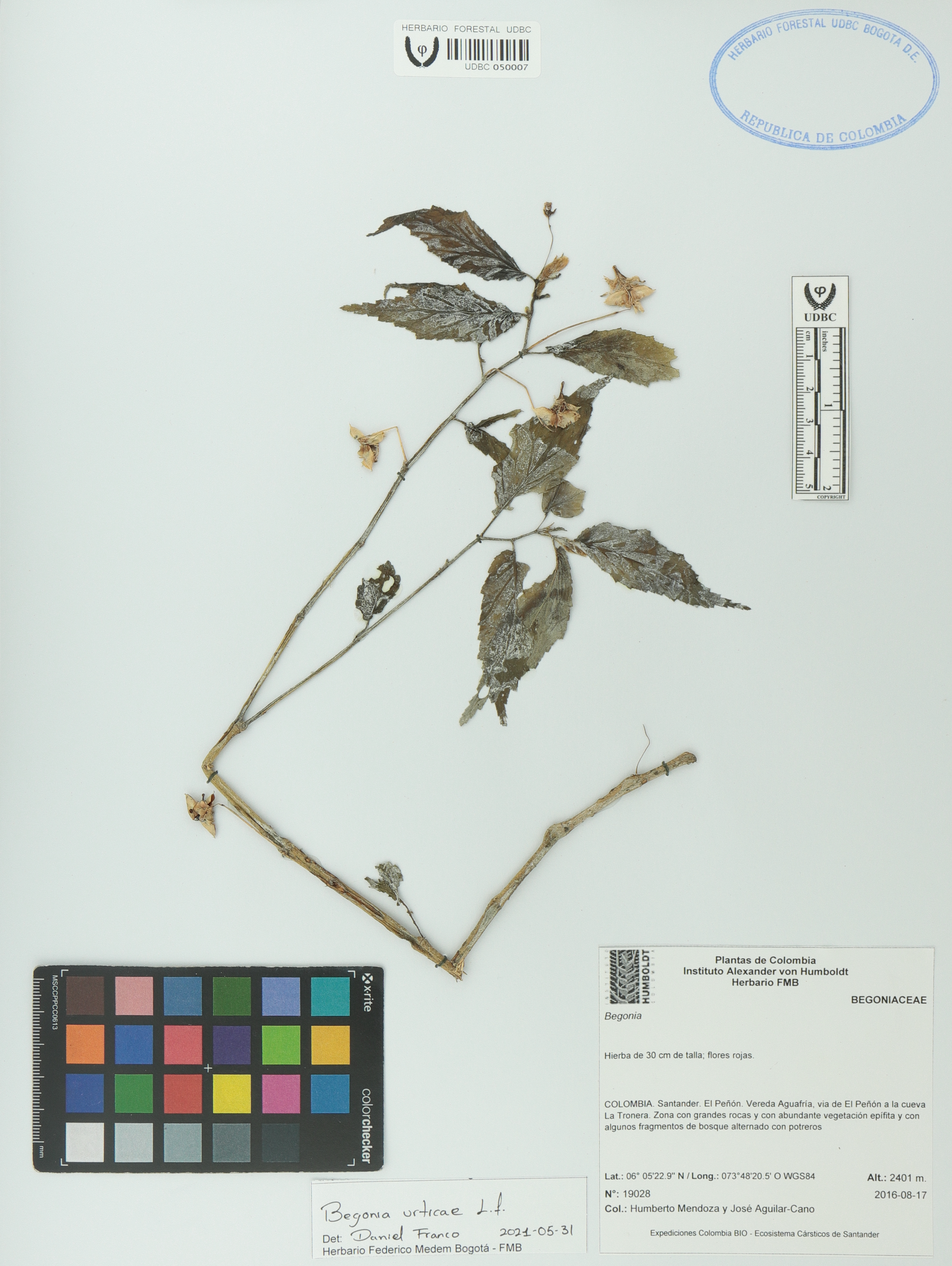 Fotografía del ejemplar Mendoza, H. 19028, determinado como Begonia urticae en el año 2021