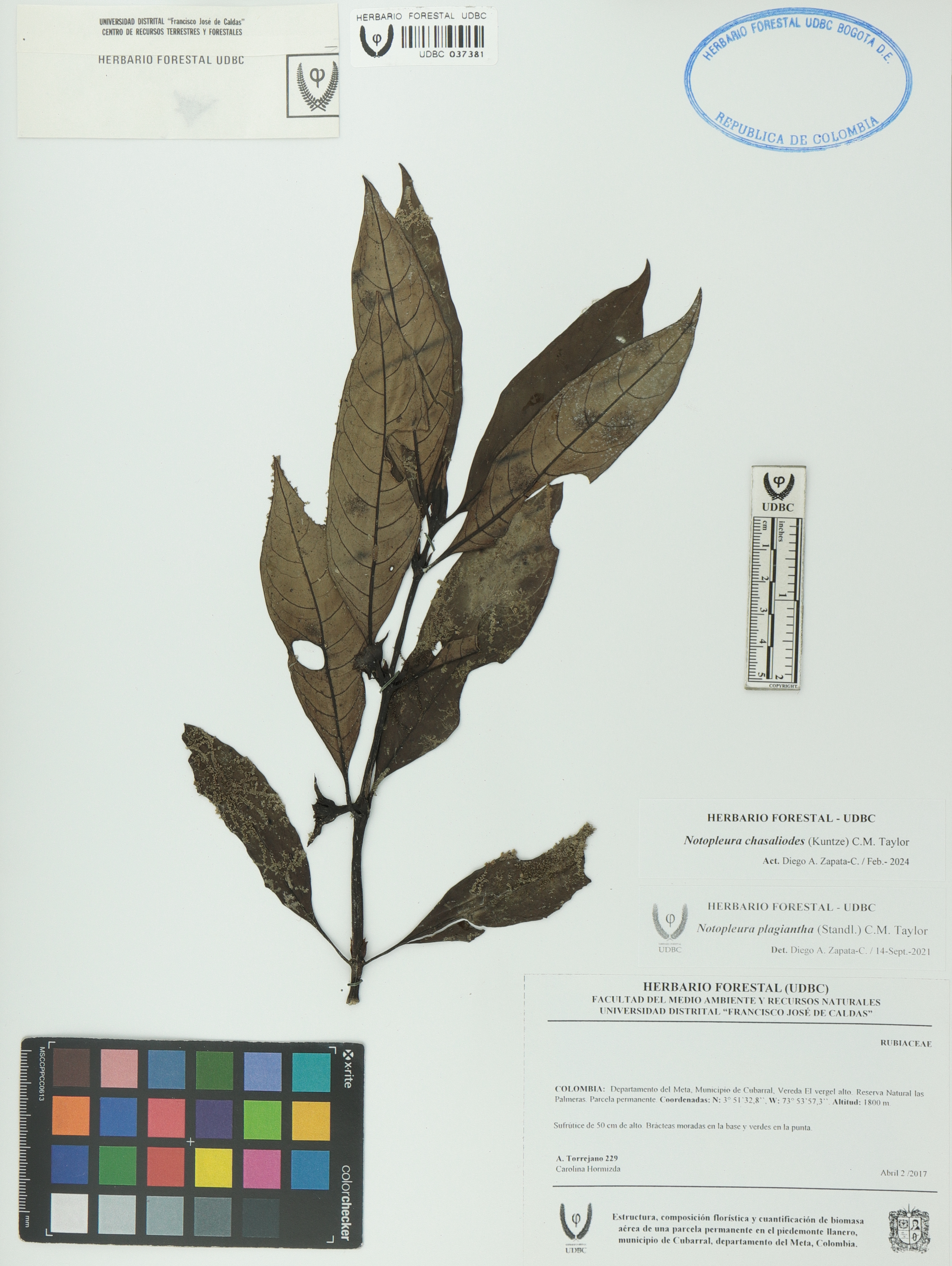 Fotografía del ejemplar Torrejano, A. 229, determinado como Notopleura chasaliodes en el año 2021