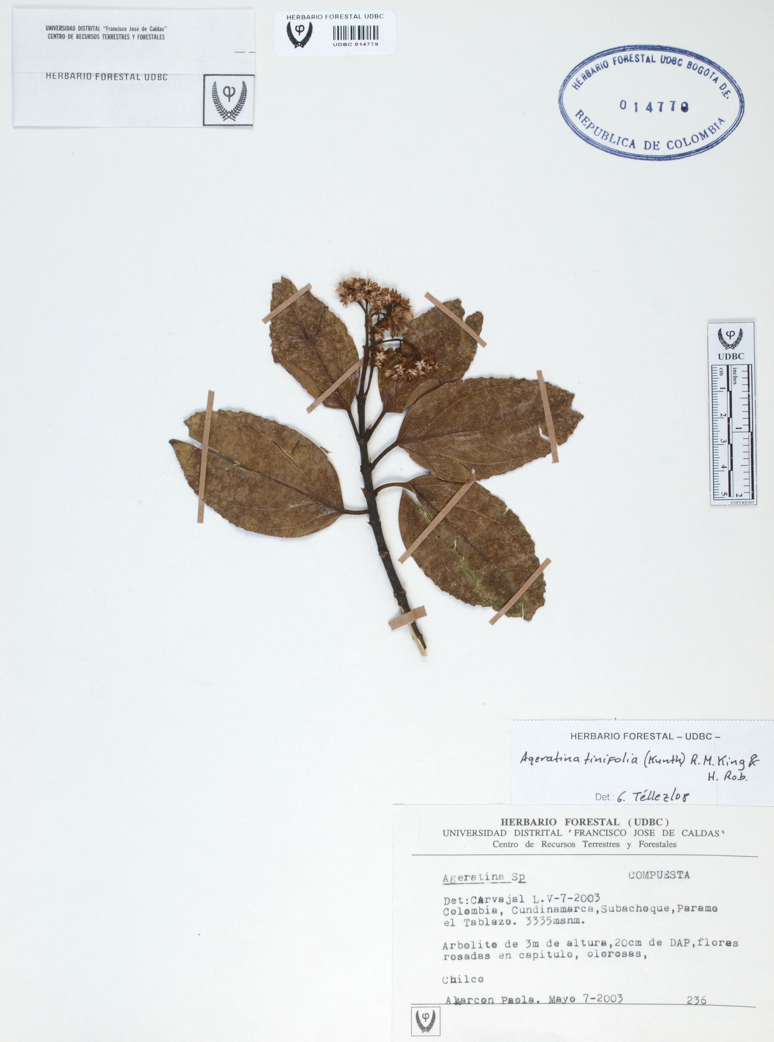 Fotografía del ejemplar Alarcón, P. 236, determinado como Ageratina tinifolia en el año 2008