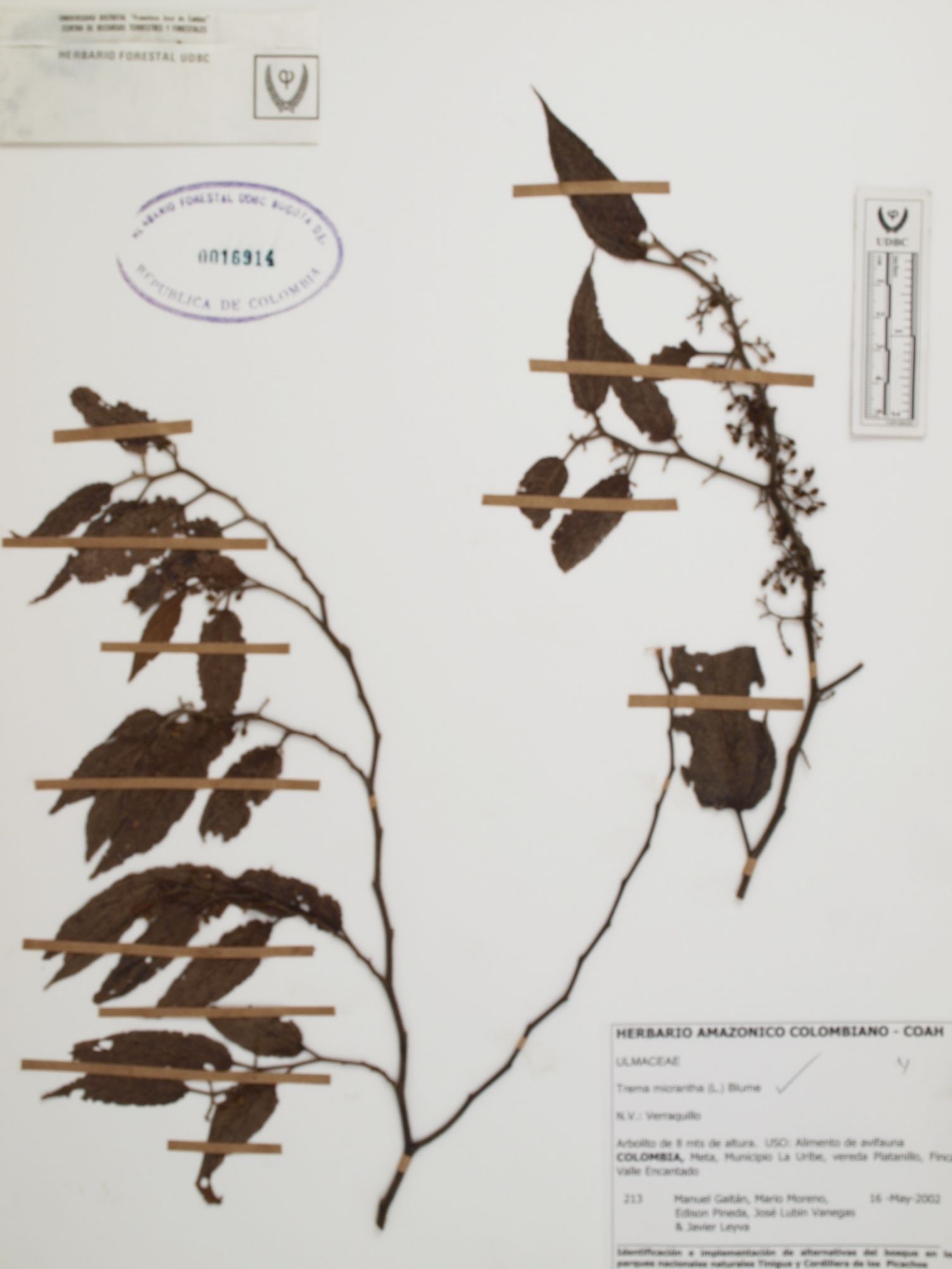 Fotografía del ejemplar Gaitán, M. 213, determinado como Trema micranthum