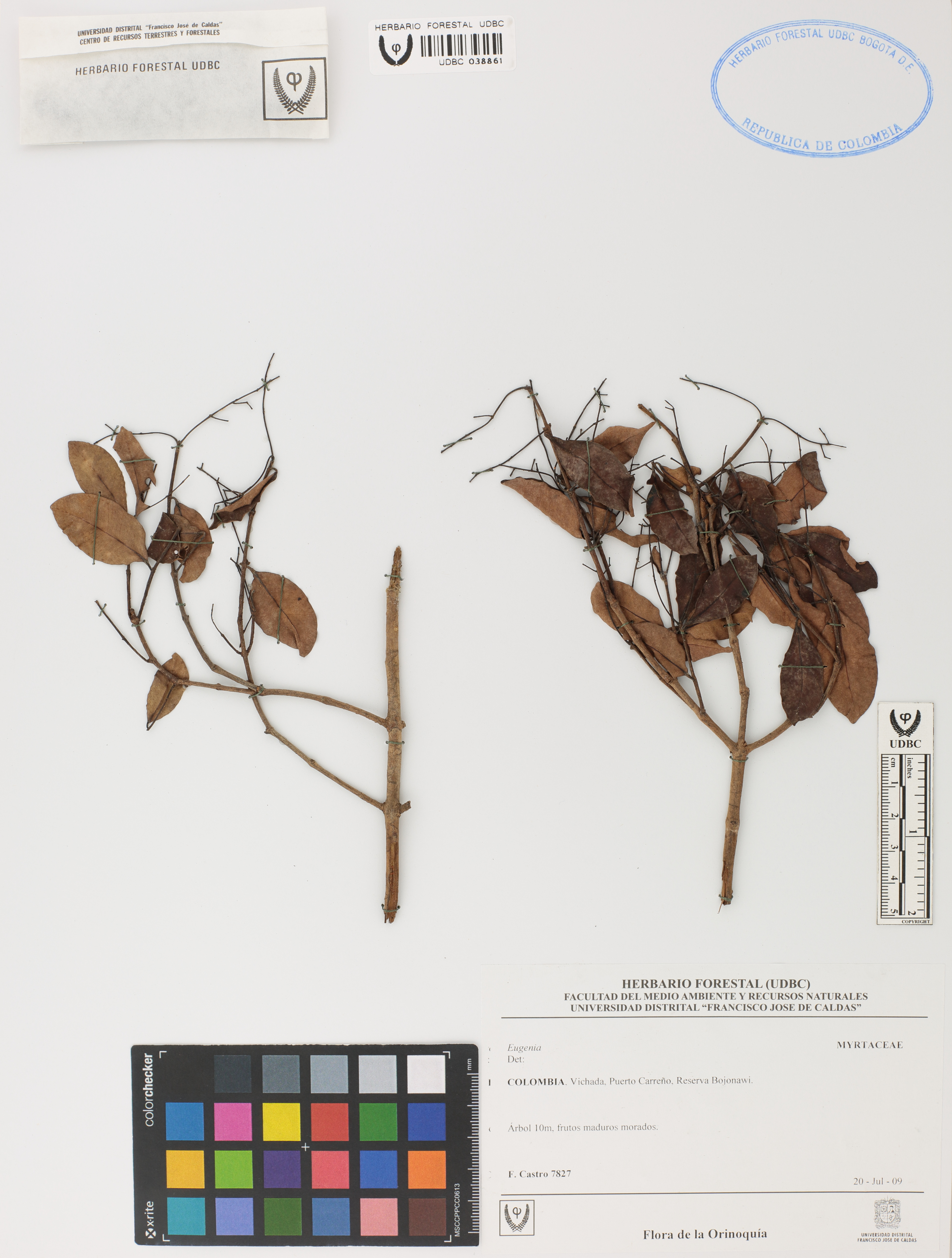 Fotografía del ejemplar Castro, F. 7827, determinado como Eugenia sp.