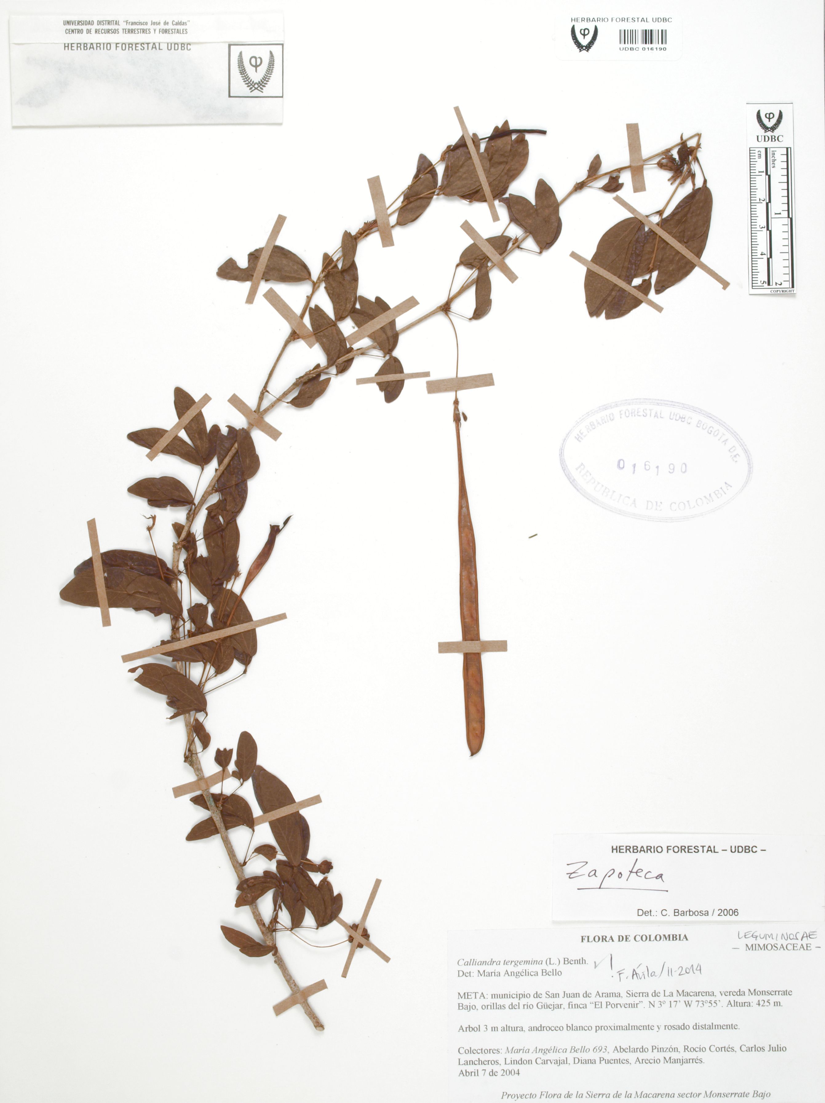 Fotografía del ejemplar Bello, M. 693, determinado como Calliandra tergemina en el año 2014