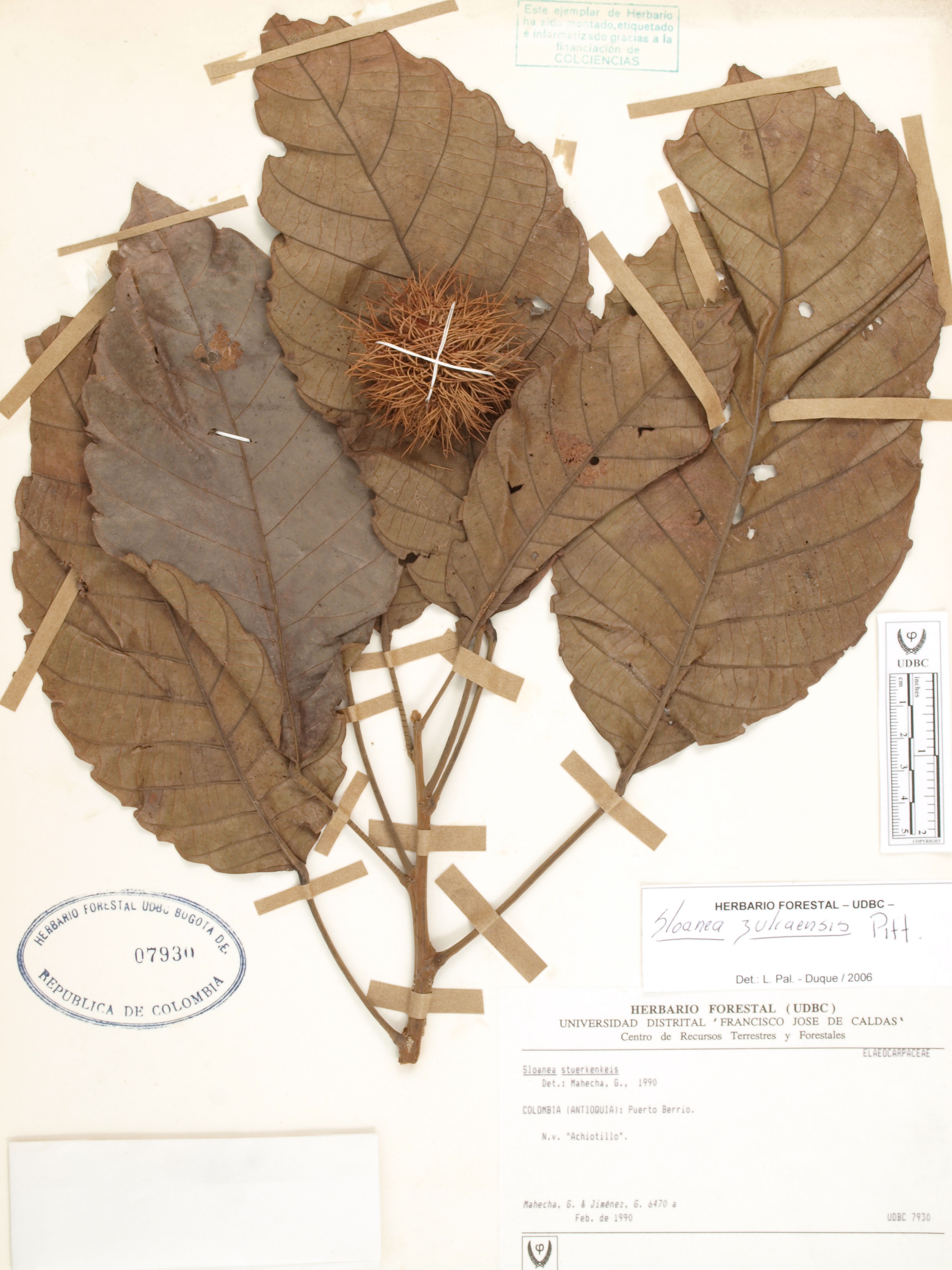 Fotografía del ejemplar Mahecha, G. 6470, determinado como Sloanea zuliaensis en el año 2006