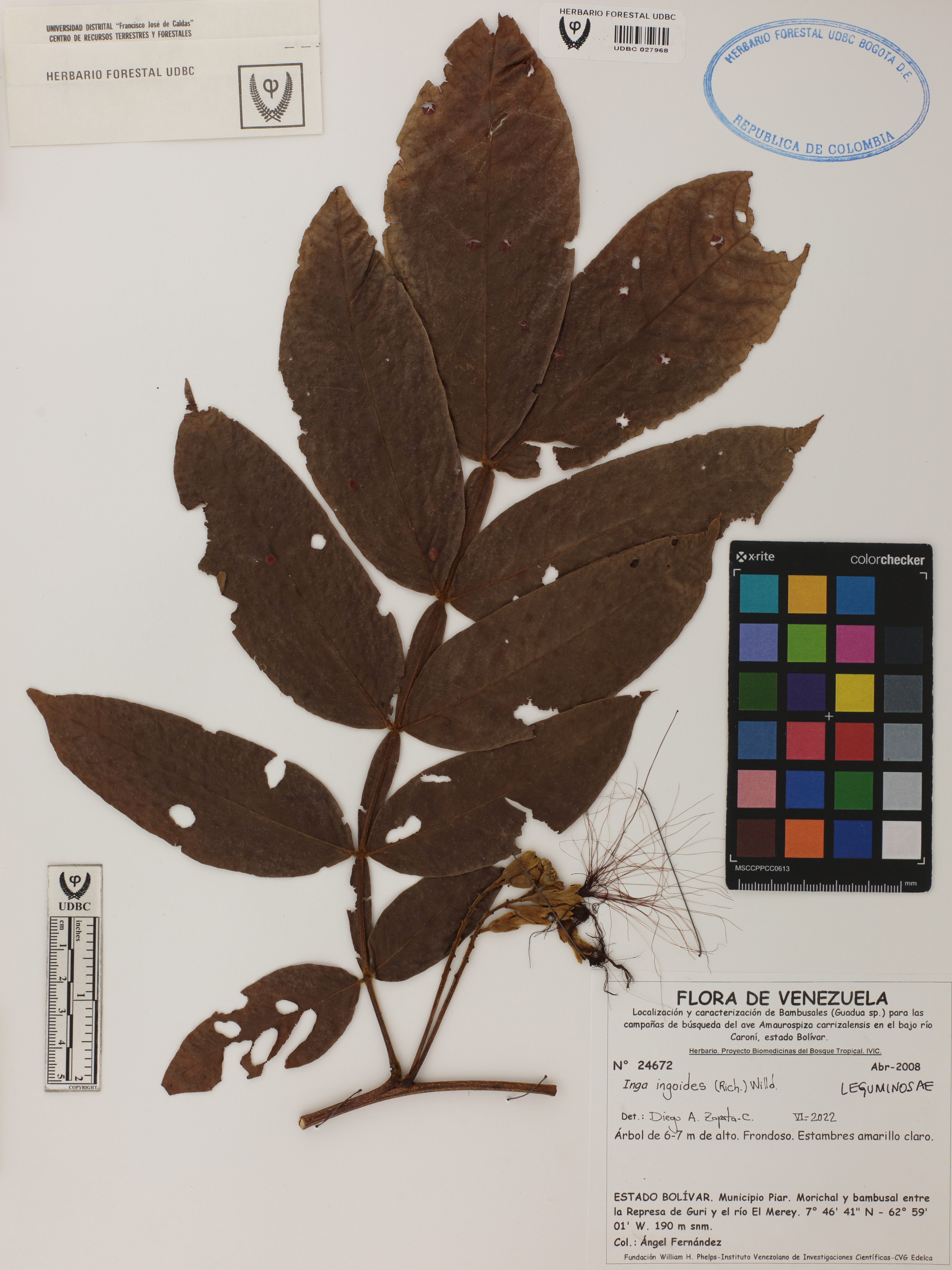 Fotografía del ejemplar Fernández, A. 24672, determinado como Inga ingoides en el año 2022
