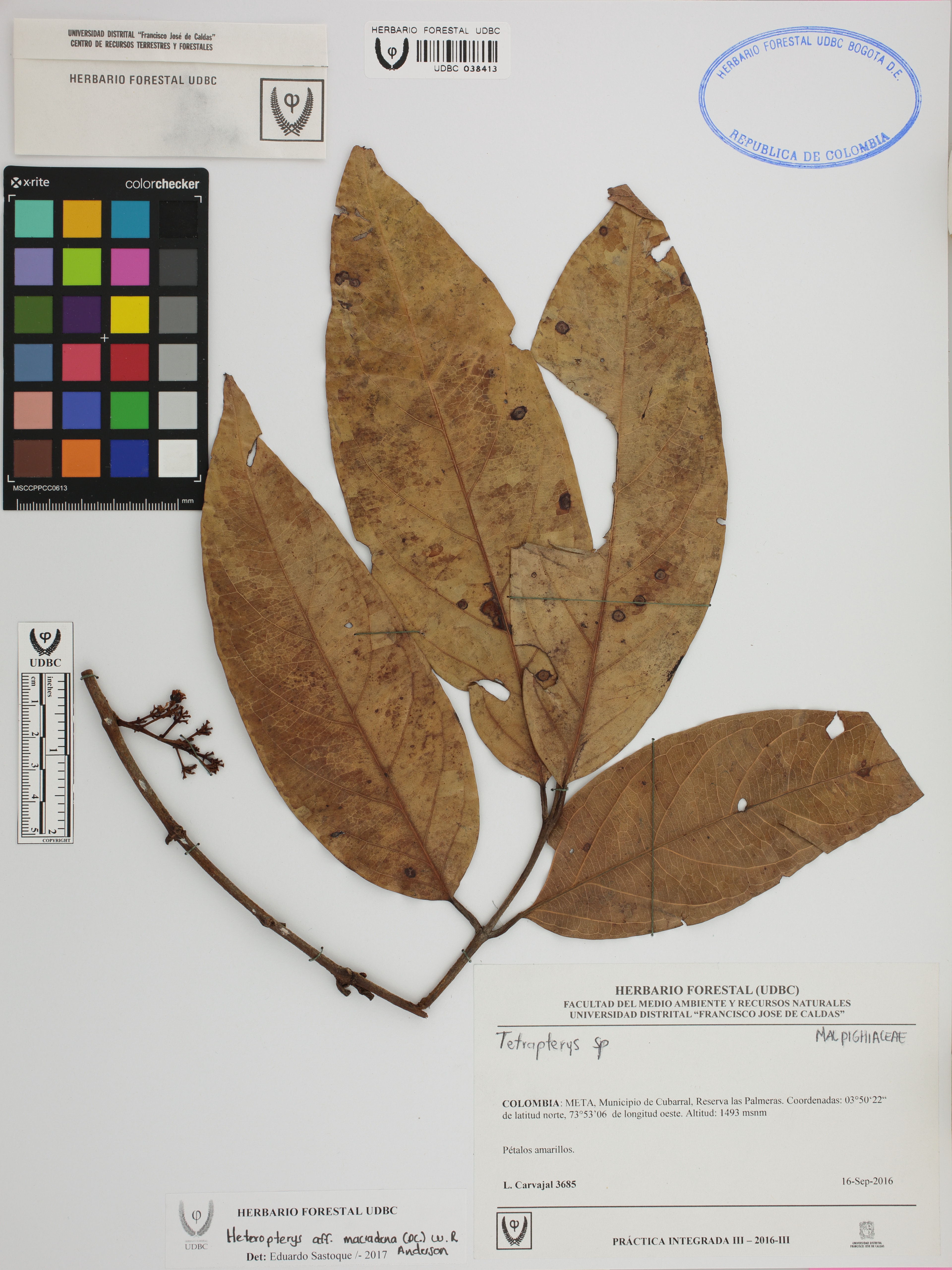 Fotografía del ejemplar Carvajal, L. 3685, determinado como Heteropterys macradena en el año 2017