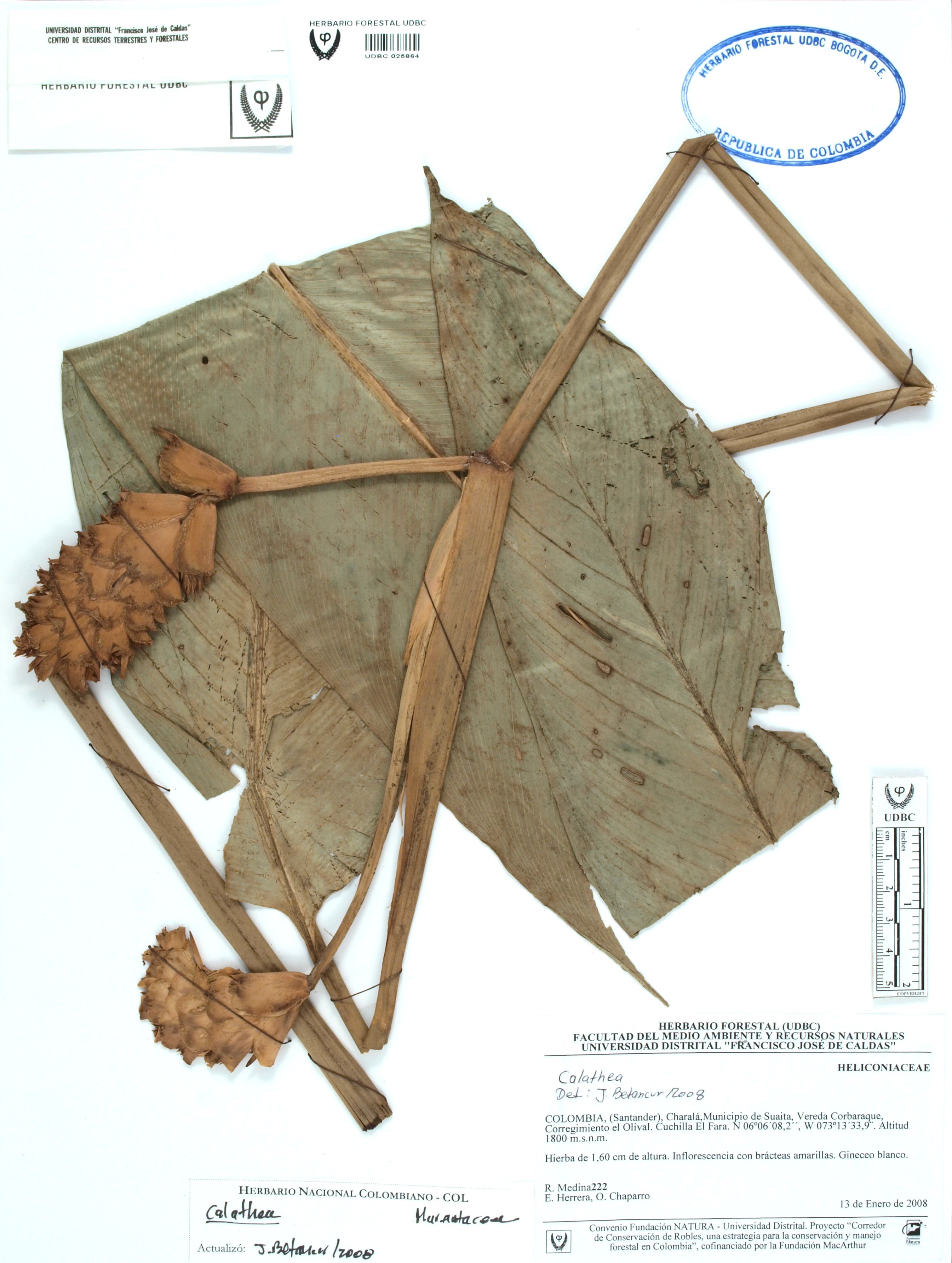 Fotografía del ejemplar Medina, R. 222, determinado como Calathea sp. en el año 2008