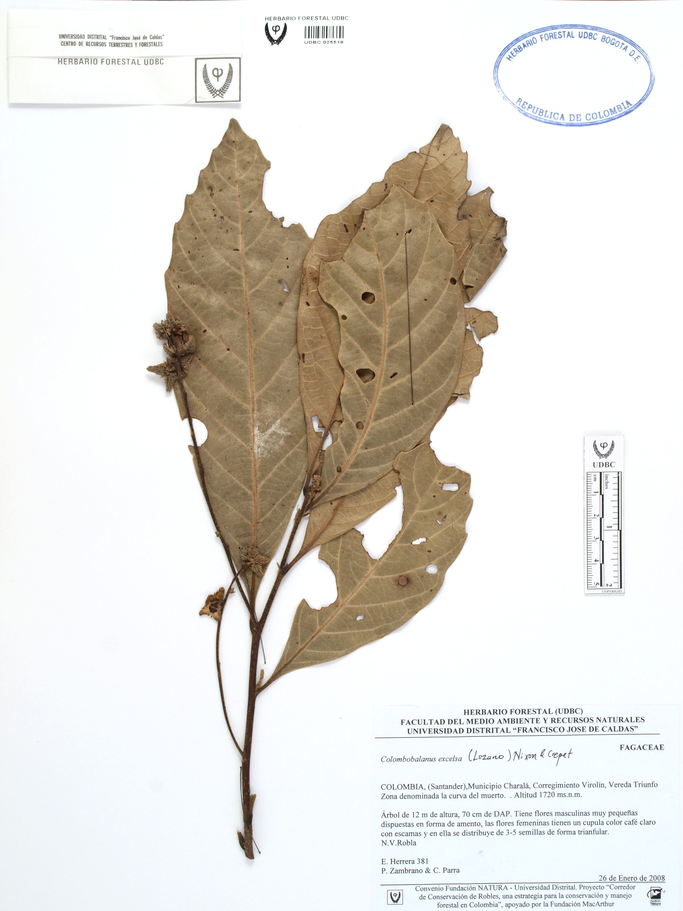 Fotografía del ejemplar Herrera, E. 381, determinado como Colombobalanus excelsa