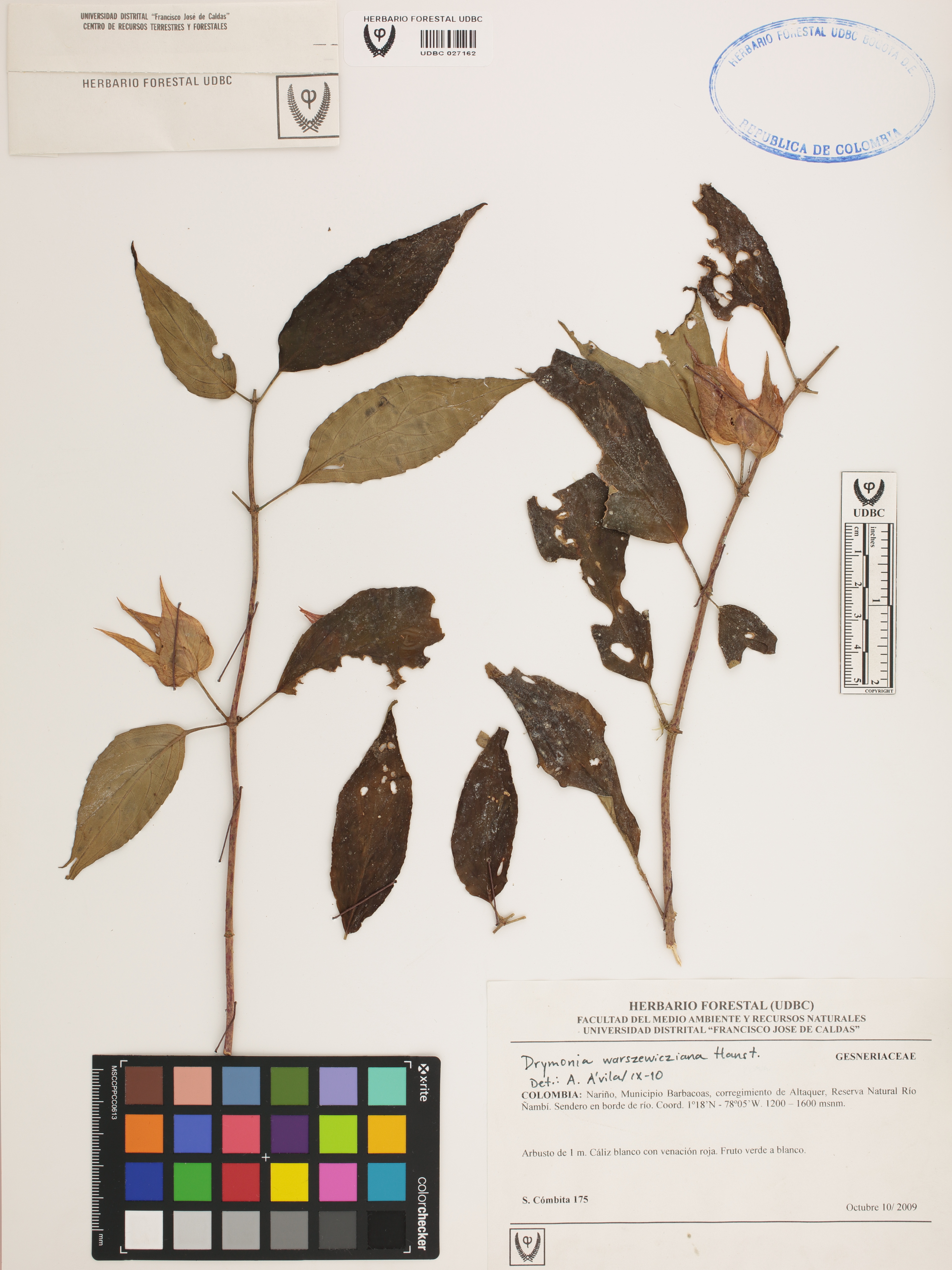 Fotografía del ejemplar Cómbita, S. 175, determinado como Drymonia warszewicziana en el año 2010