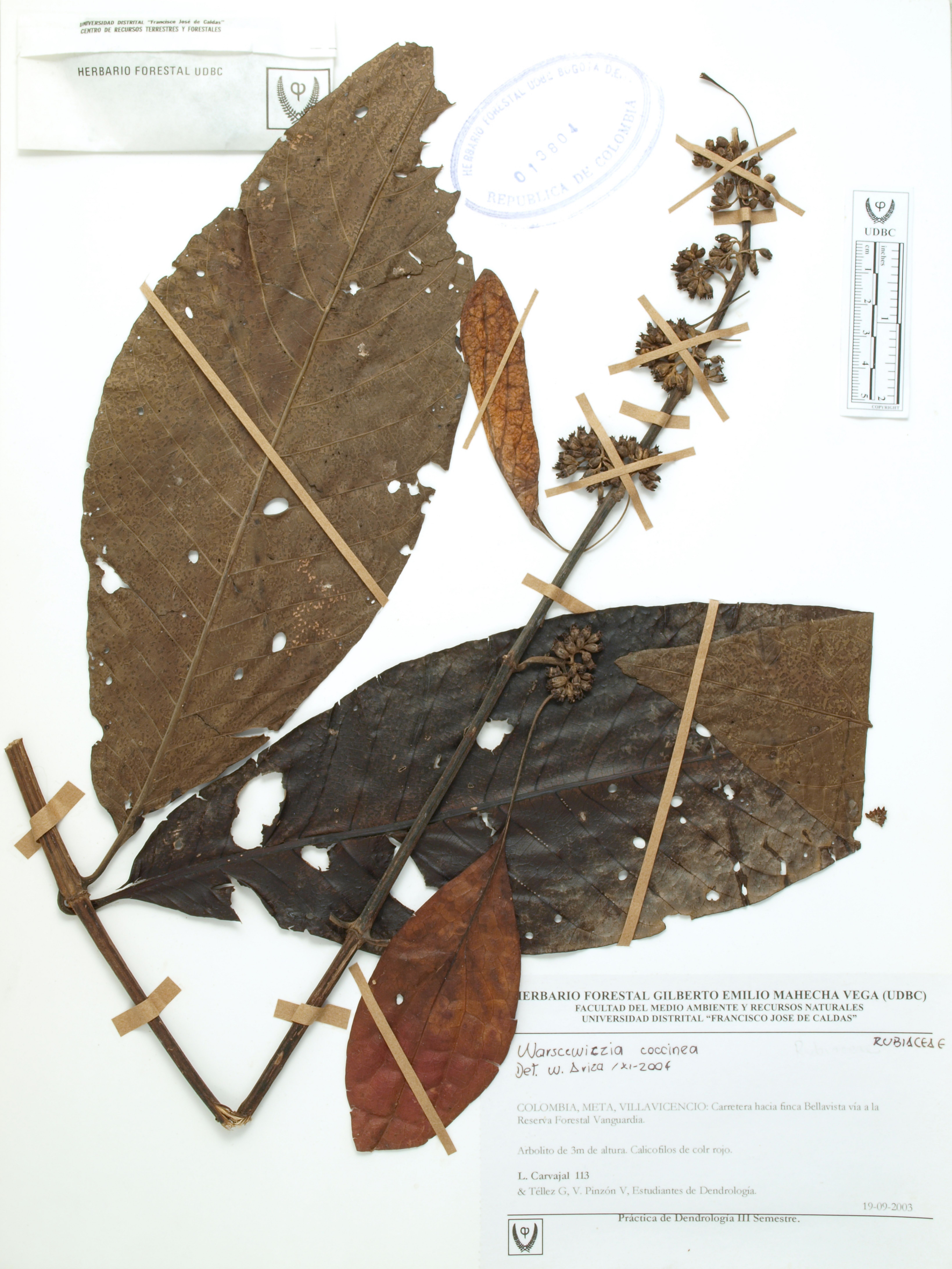 Fotografía del ejemplar Carvajal, L. 113, determinado como Warszewiczia coccinea en el año 2004