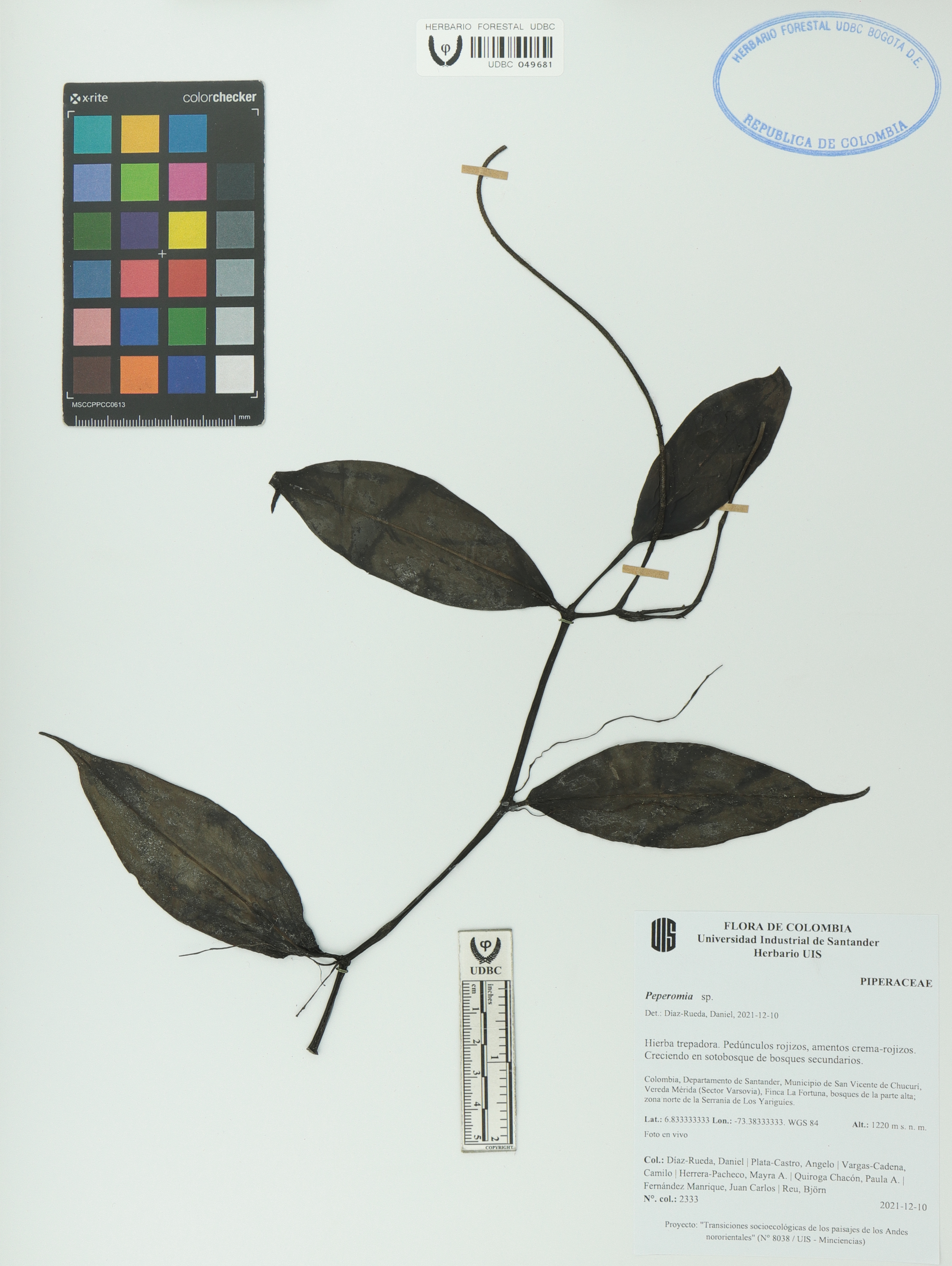 Fotografía del ejemplar Díaz-Rueda, D. 2333, determinado como Peperomia sp. en el año 2021