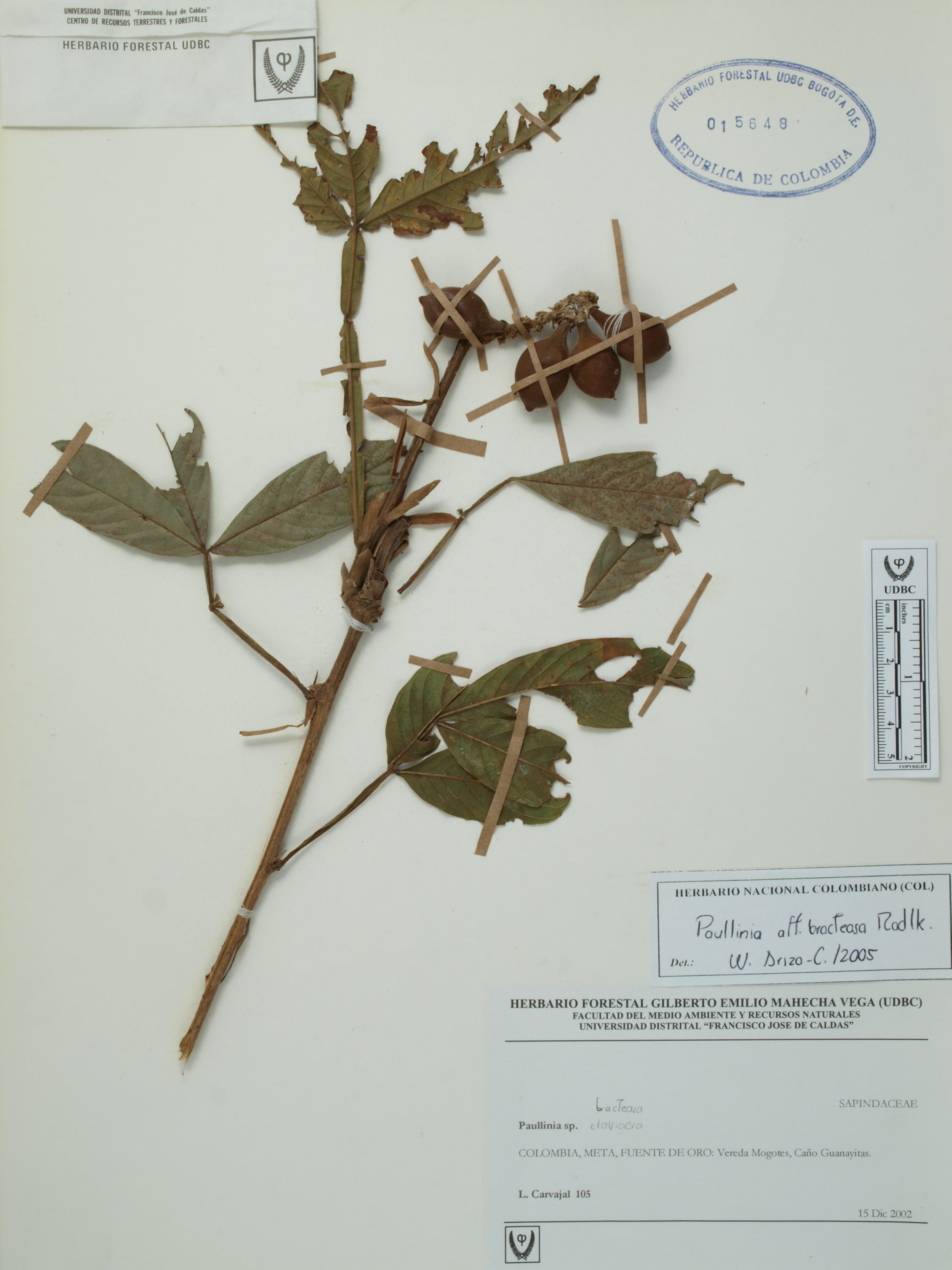 Fotografía del ejemplar Carvajal, L. 105, determinado como Paullinia bracteosa en el año 2005