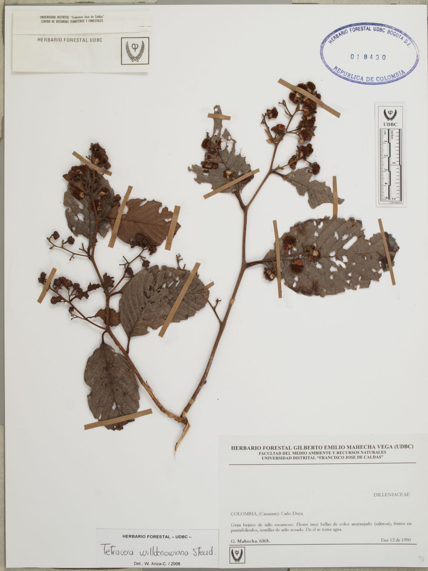 | dc.description | Fotografía del ejemplar Mahecha, G. 6365, determinado como Tetracera willdenowiana en el año 2006 | |