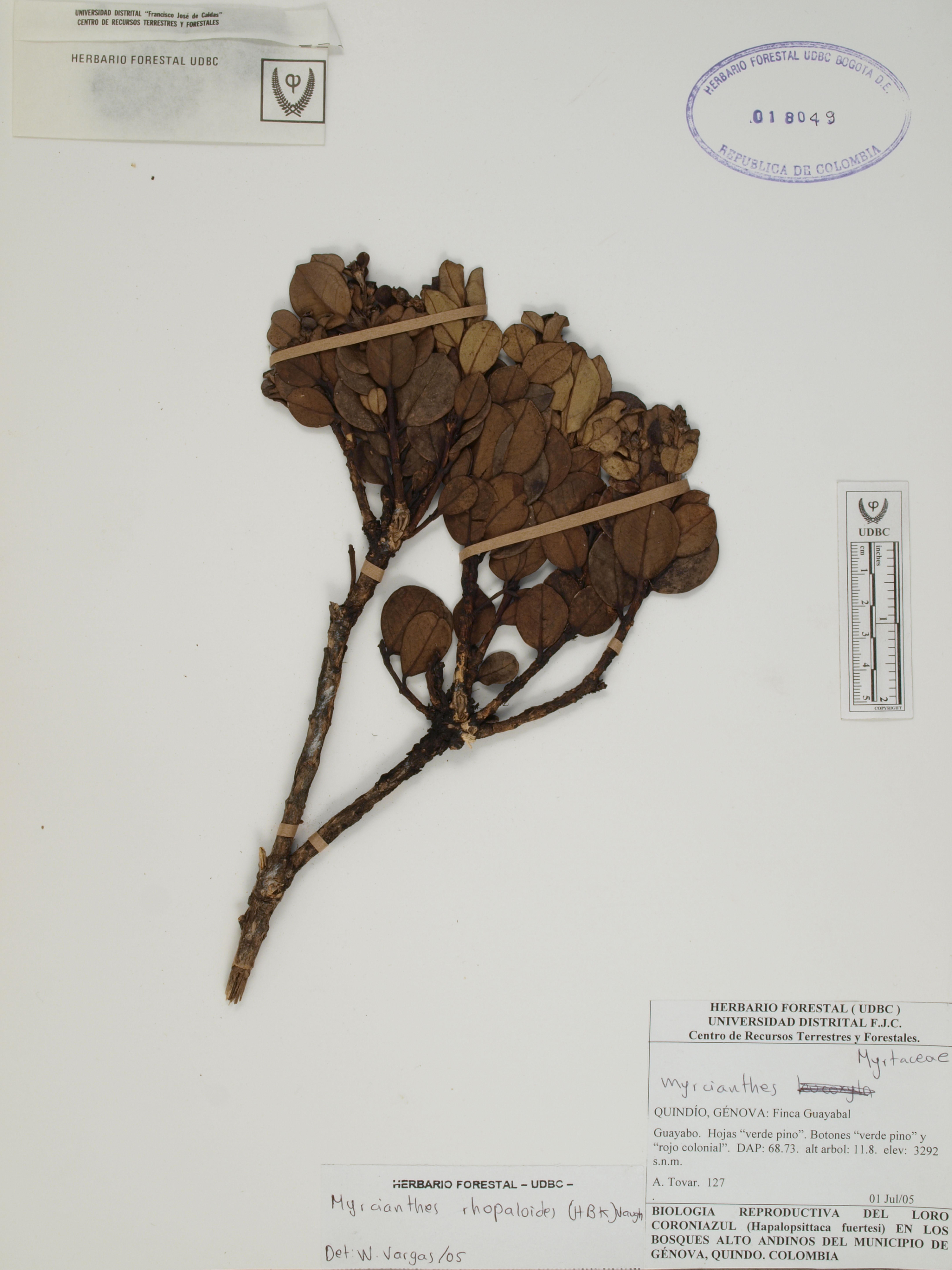 | dc.description | Fotografía del ejemplar Tovar, A. 127, determinado como Myrcianthes rhopaloides en el año 2005 | |