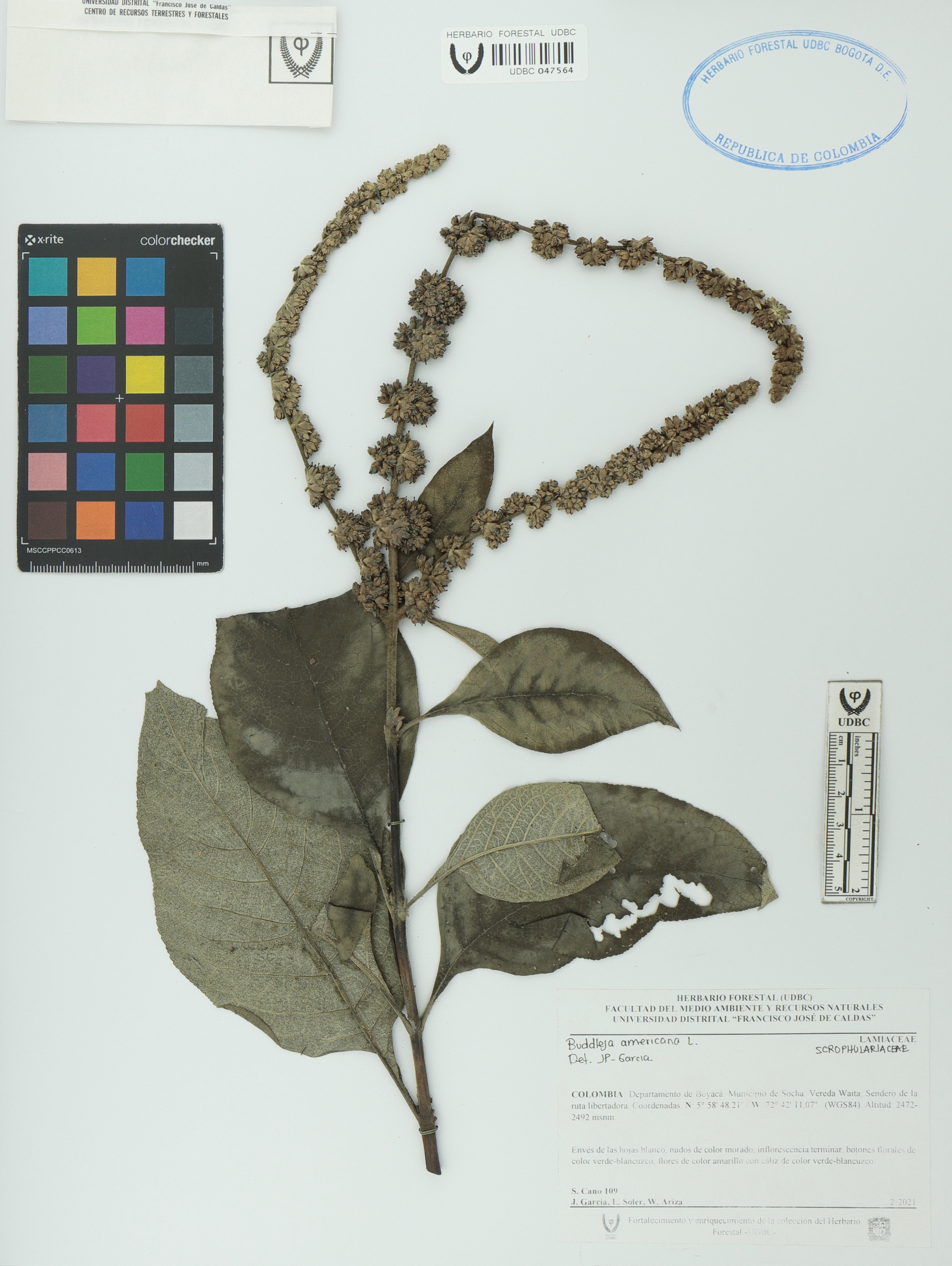 Fotografía del ejemplar Cano, S. 109, determinado como Buddleja americana