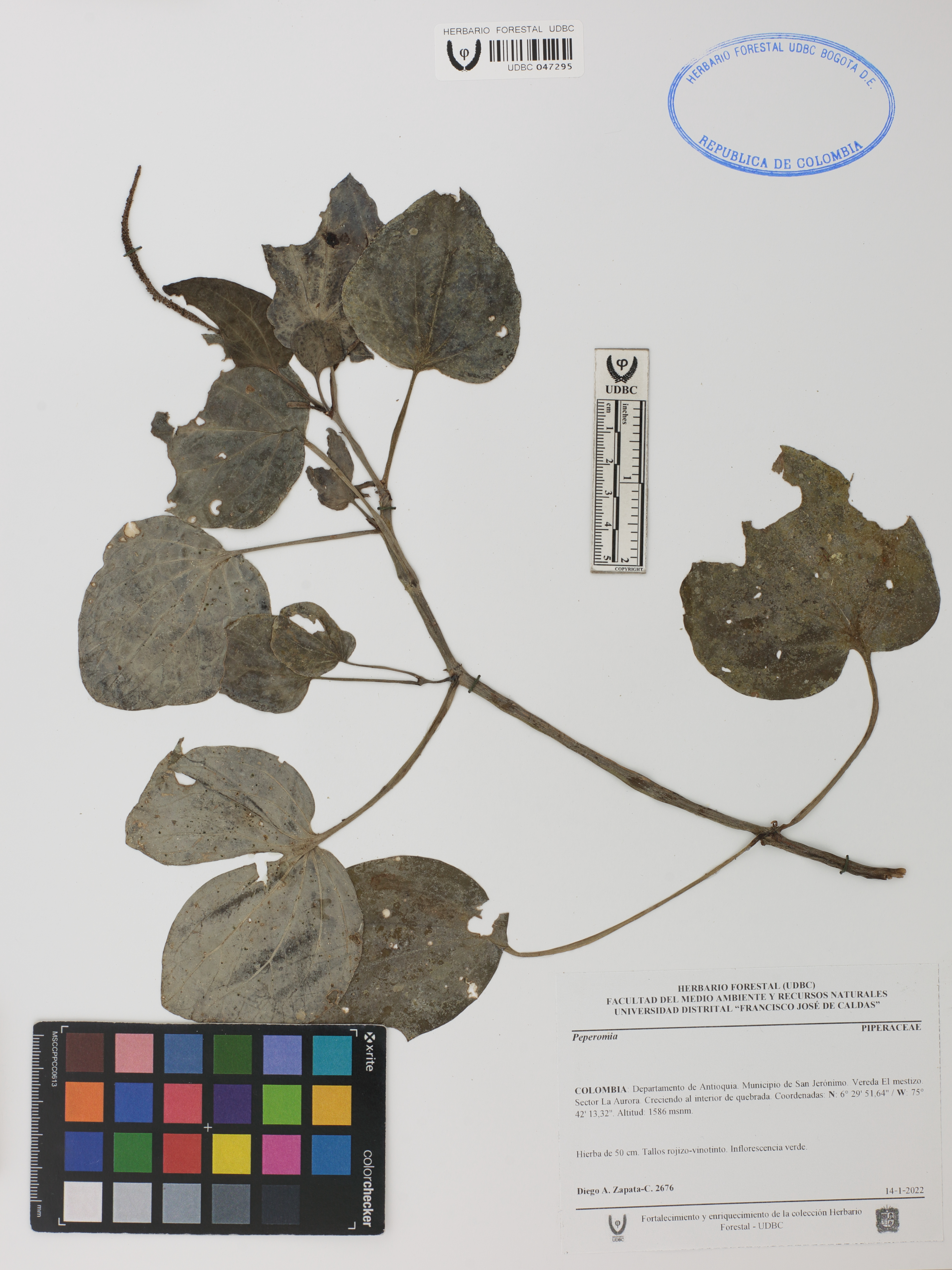 | dc.description | Fotografía del ejemplar Zapata-C., D. 2676, determinado como Peperomia sp. | |