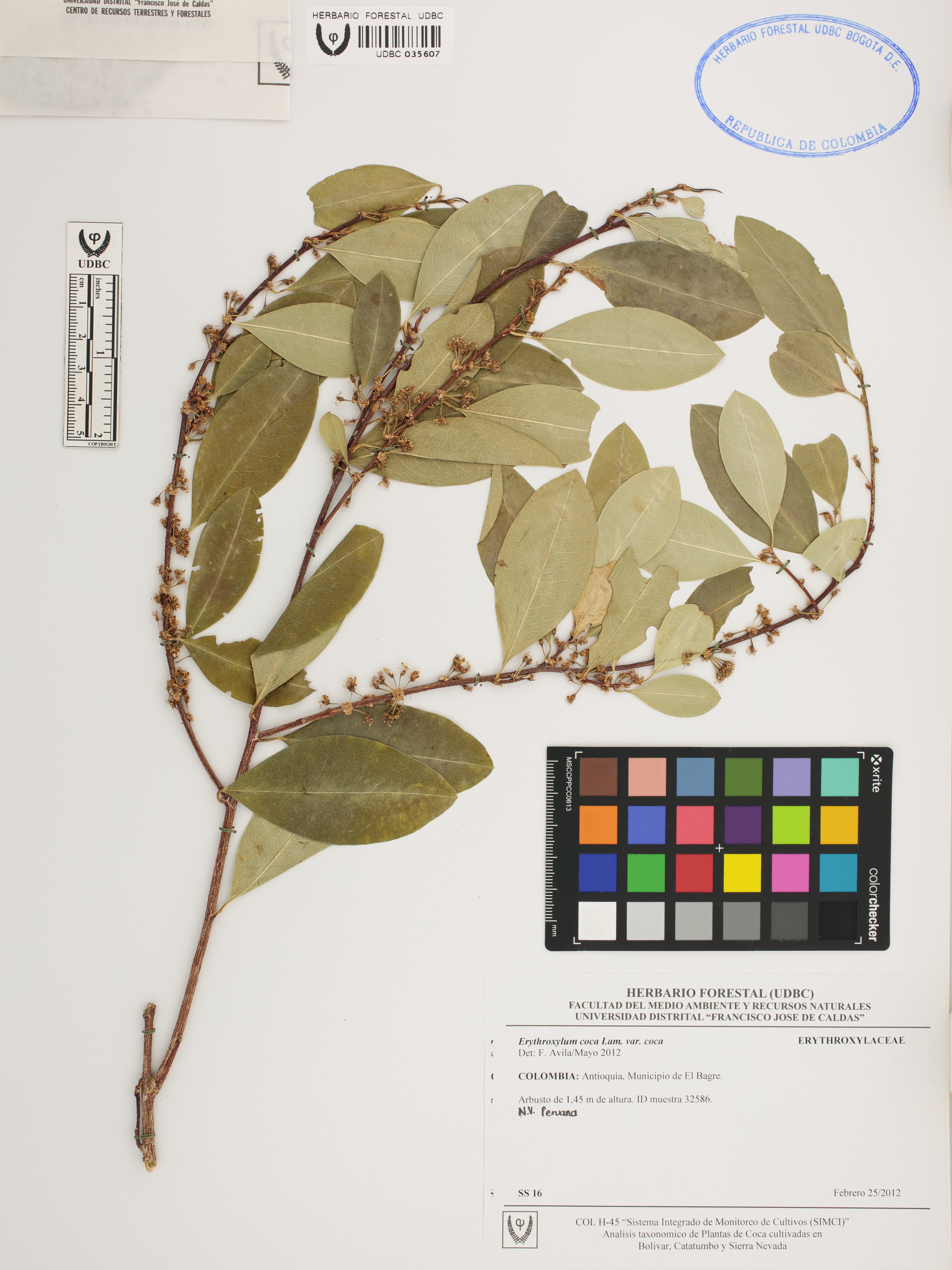 | dc.description | Fotografía del ejemplar SD 16, determinado como Erythroxylum coca var. coca en el año 2012 | |