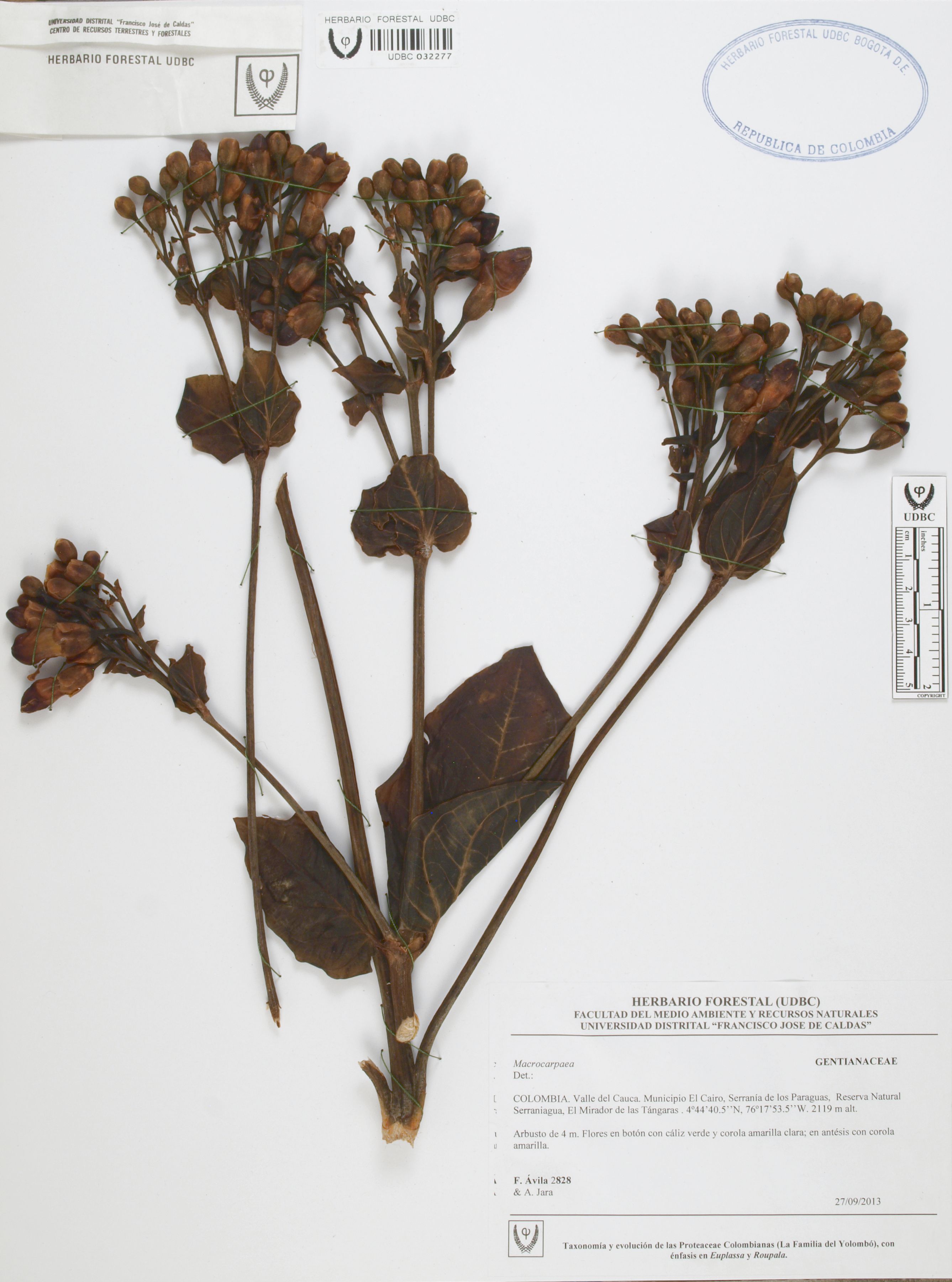 Fotografía del ejemplar Ávila, F. 2828, determinado como Macrocarpaea sp.