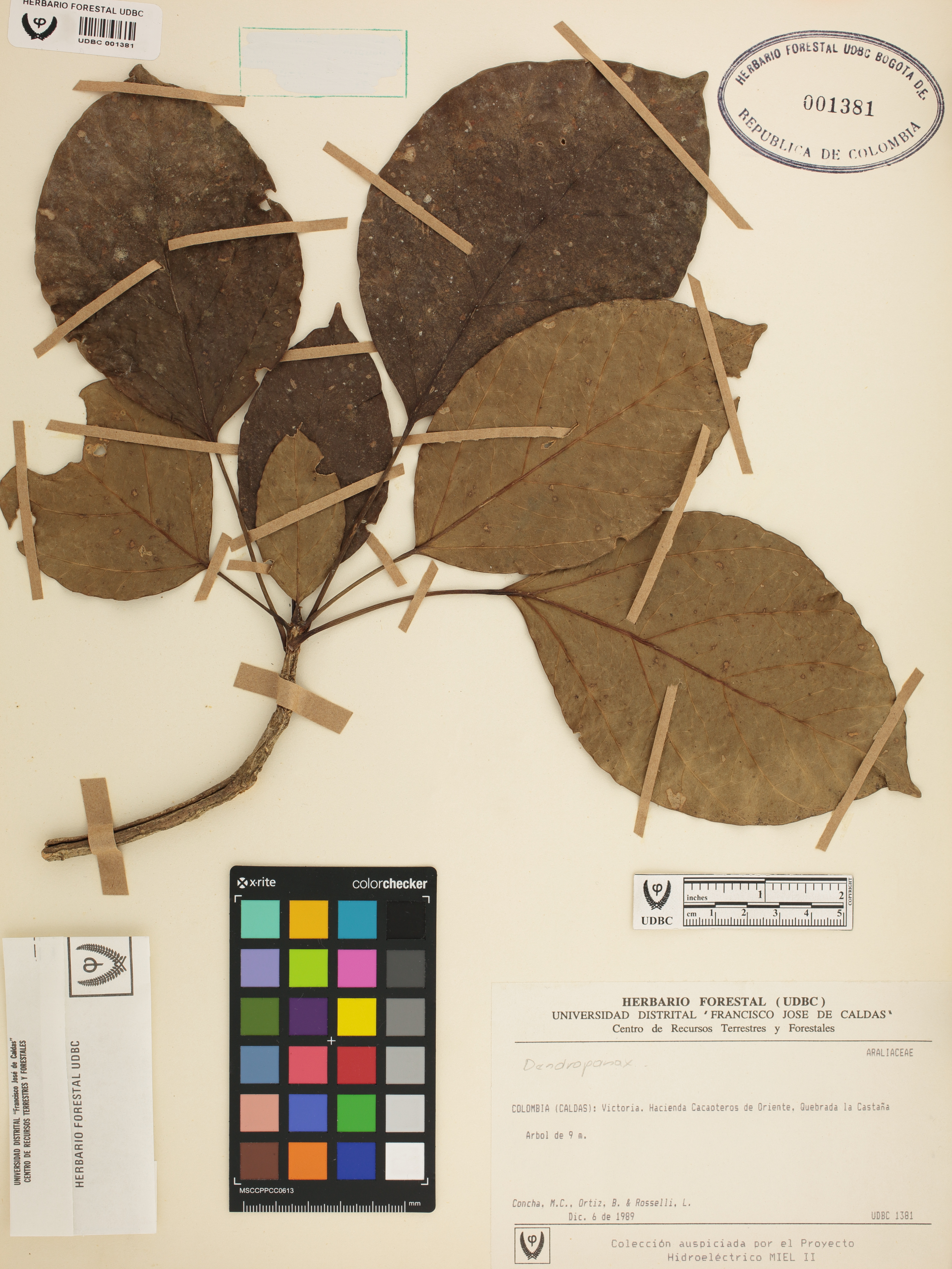 | dc.description | Fotografía del ejemplar Concha, M., determinado como Dendropanax sp. | |