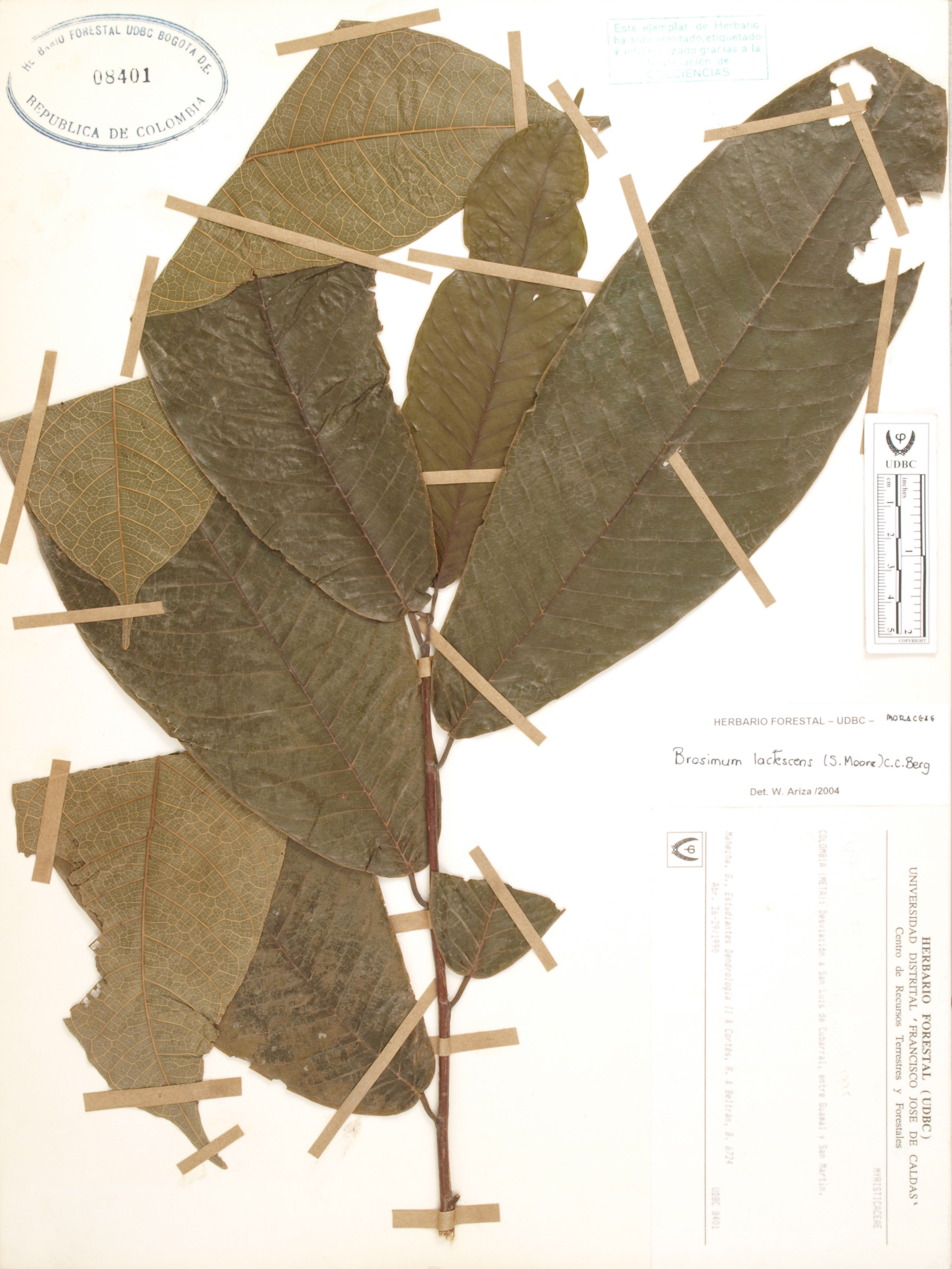 Fotografía del ejemplar Mahecha, G. 6724, determinado como Brosimum lactescens en el año 2004