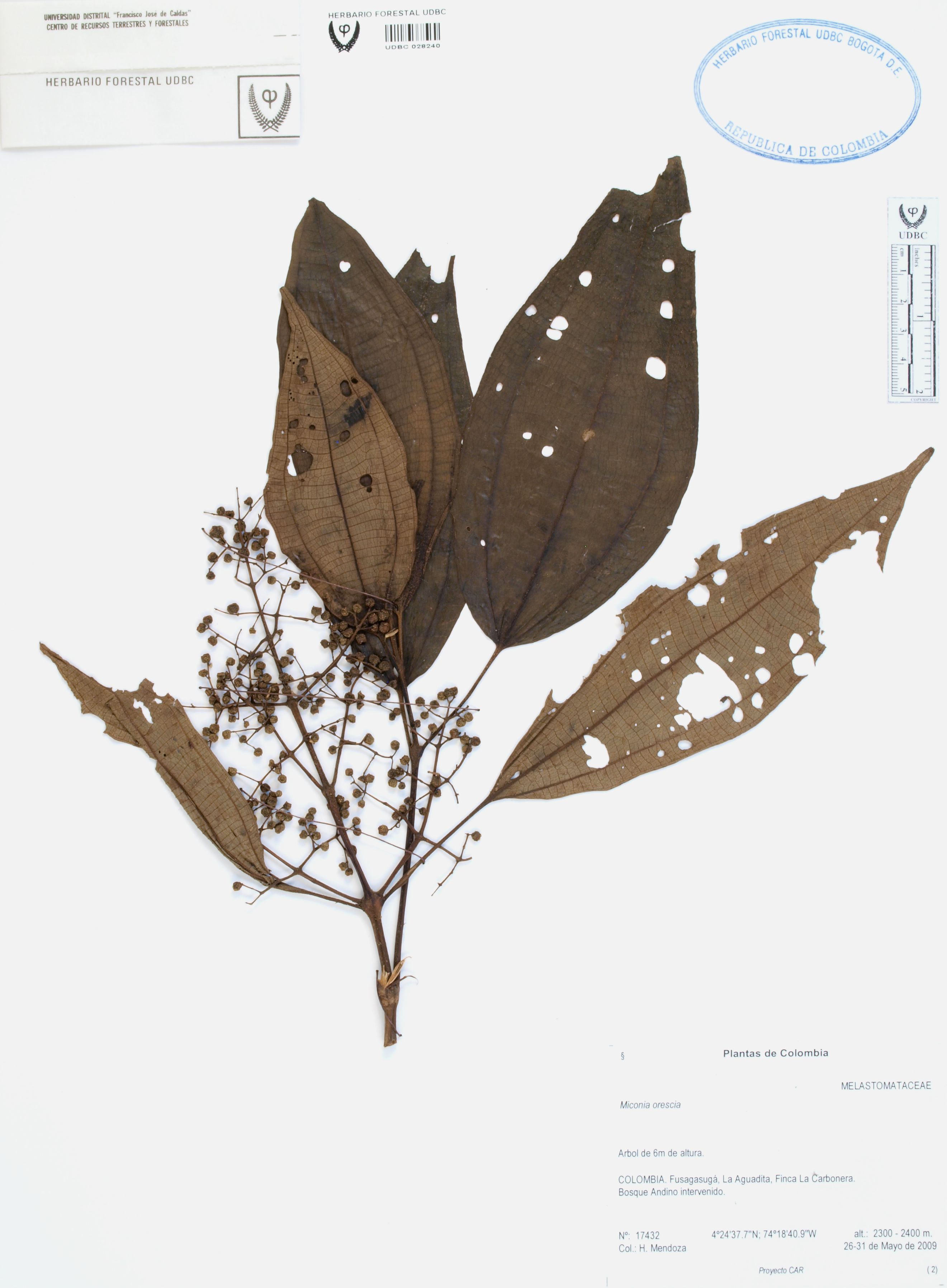Fotografía del ejemplar Mendoza, H. 17432, determinado como Miconia orescia