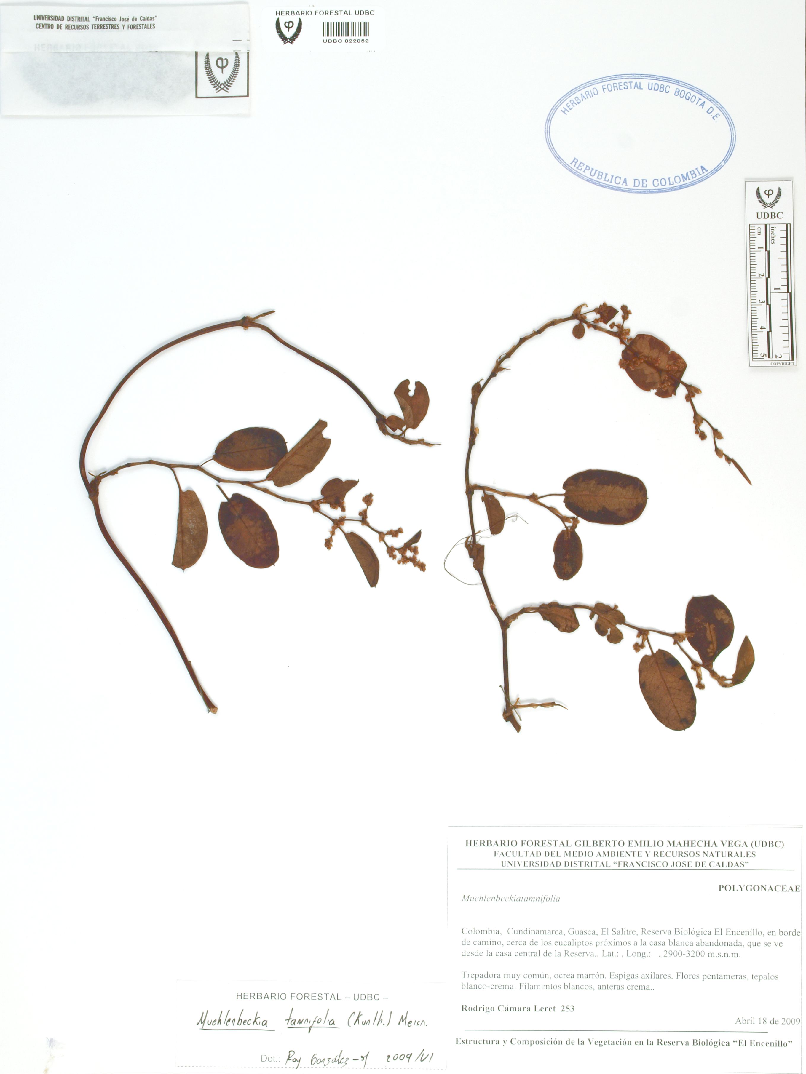 Fotografía del ejemplar Cámara, R. 253, determinado como Muehlenbeckia tamnifolia en el año 2009
