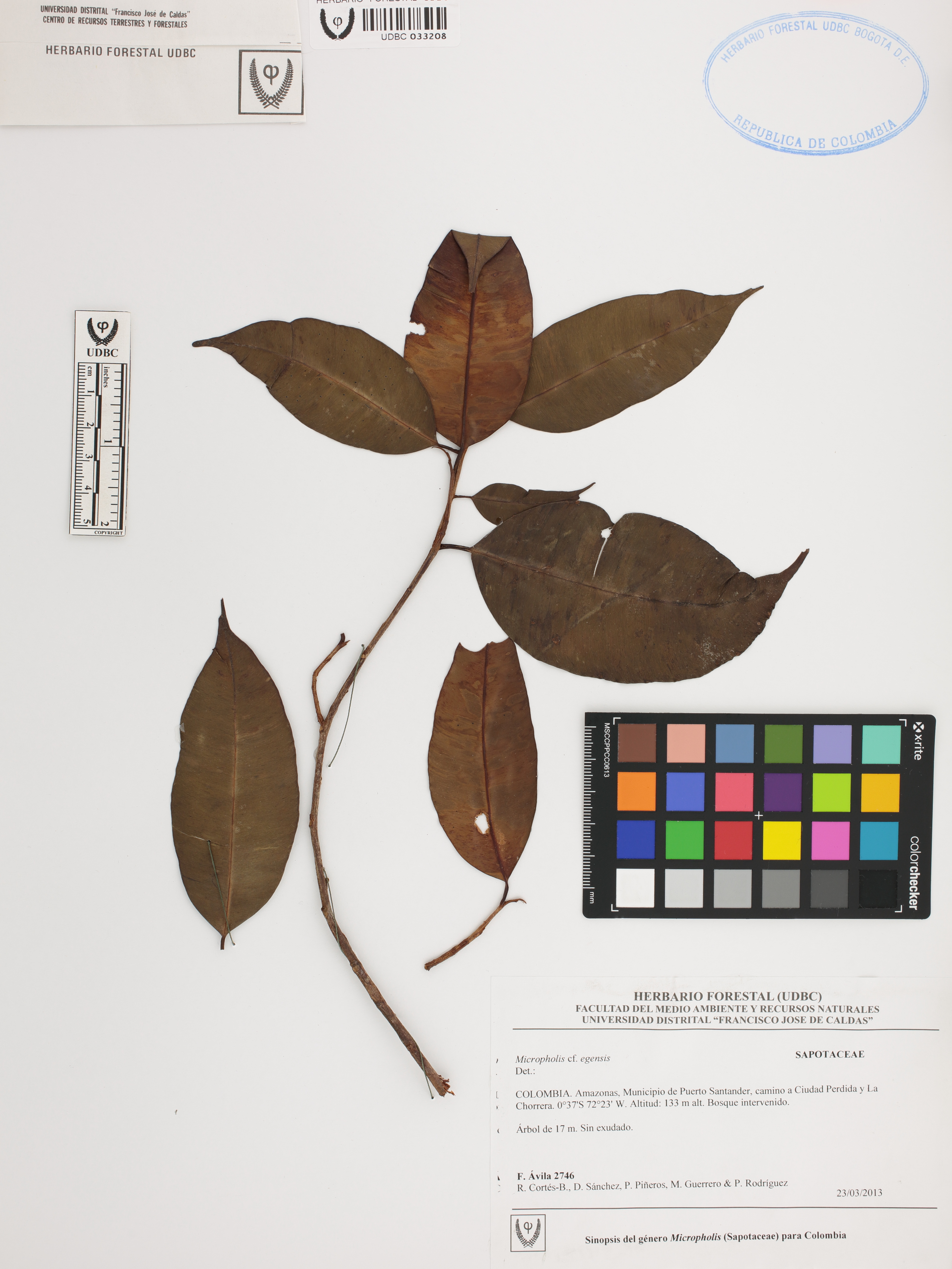 Fotografía del ejemplar Ávila, F. 2746, determinado como Micropholis egensis