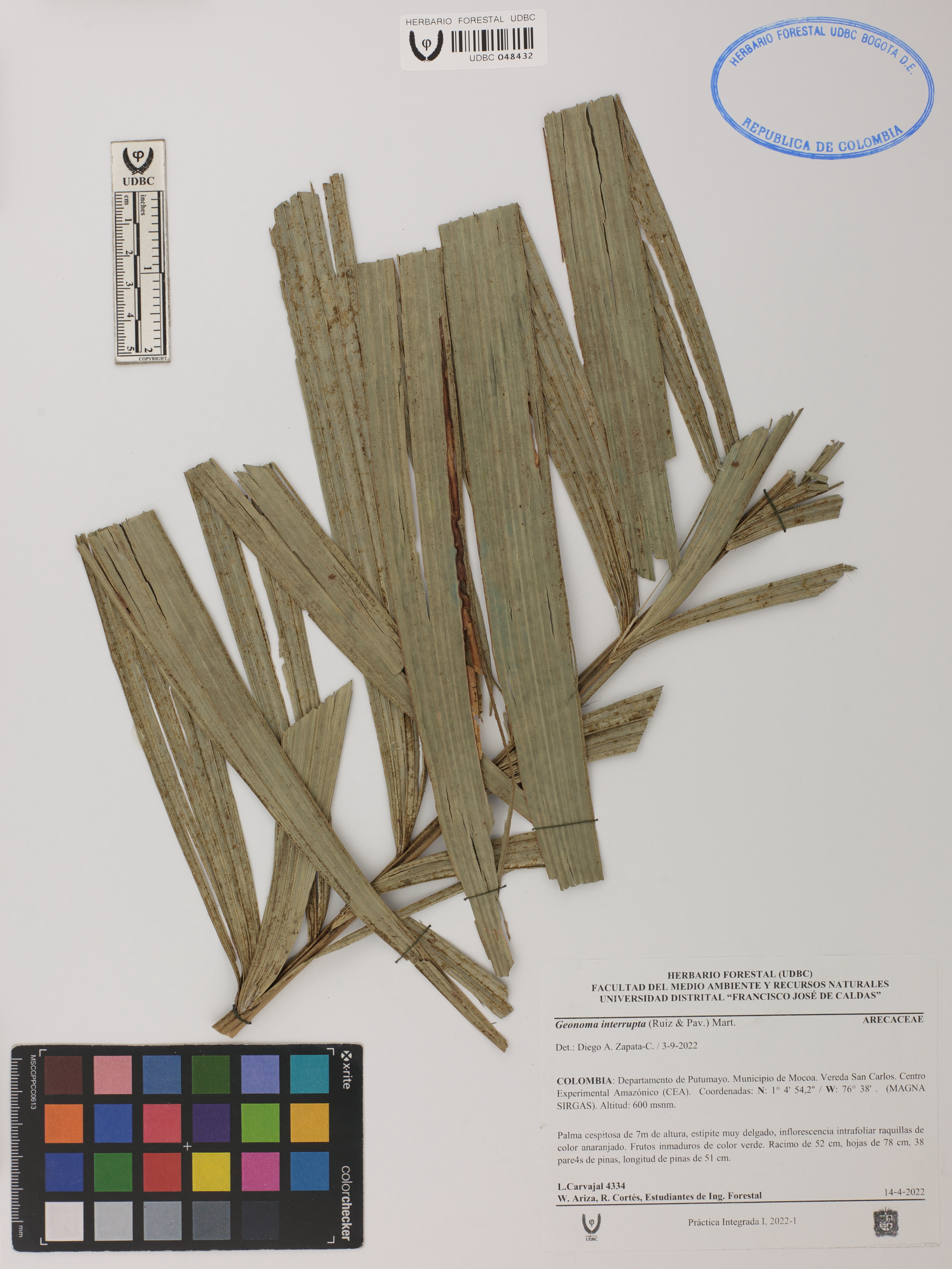 Fotografía del ejemplar Carvajal, L. 4334, determinado como Geonoma interrupta en el año 2022
