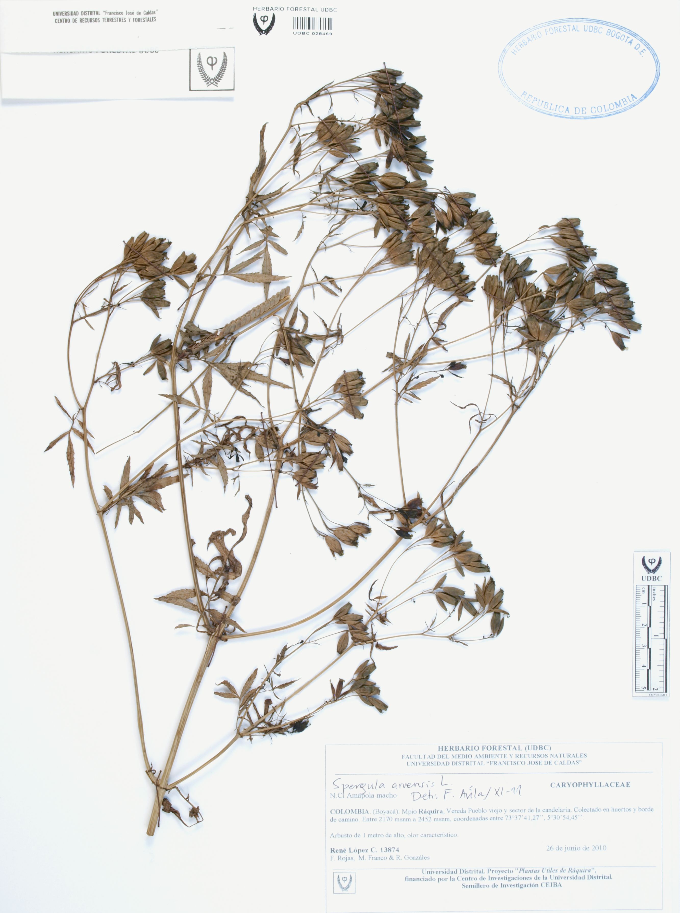 Fotografía del ejemplar López, R. 13874, determinado como Spergula arvensis en el año 2011