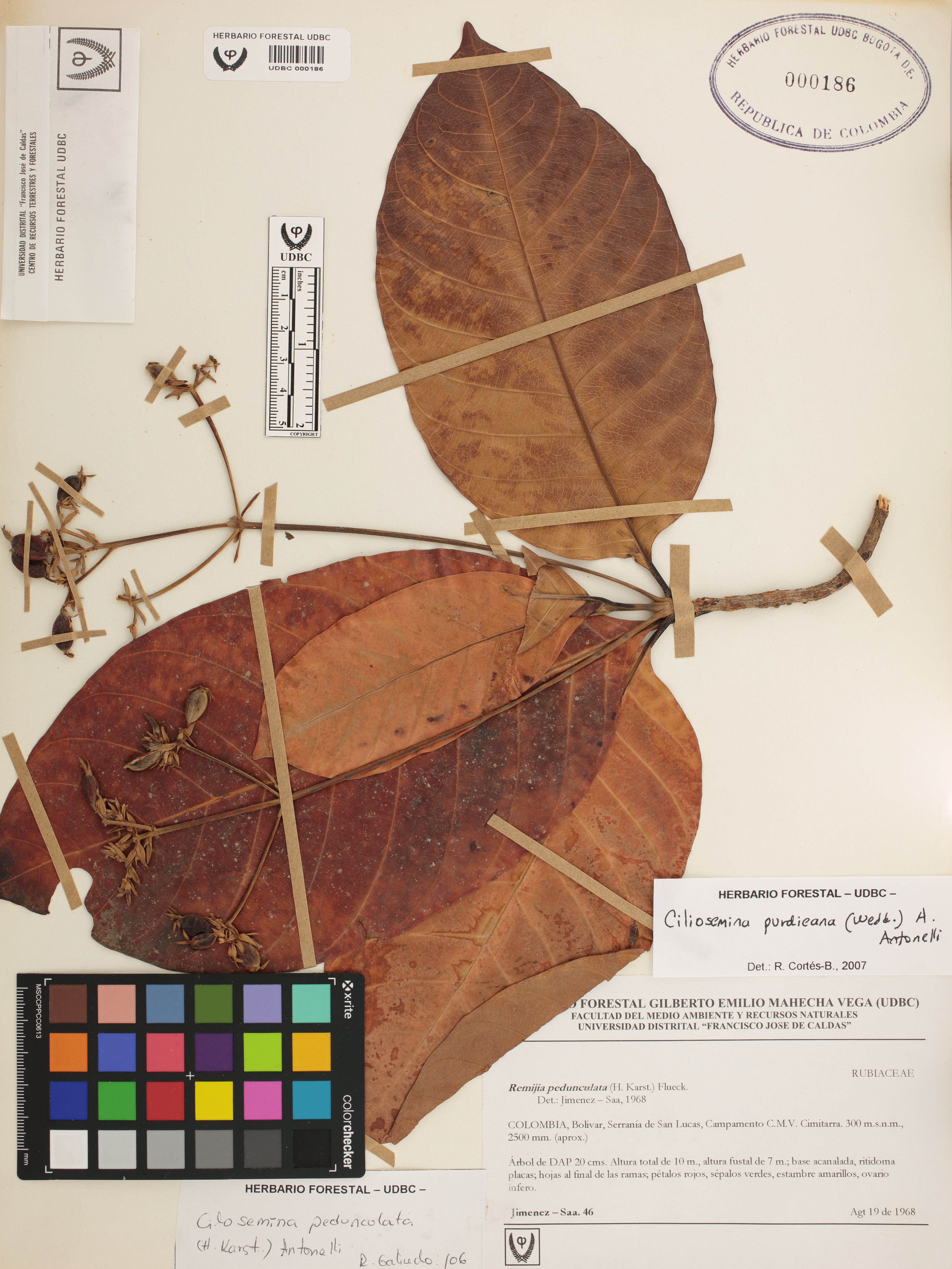 Fotografía del ejemplar Jiménez-Saa, 46, determinado como Ciliosemina purdieana en el año 2007
