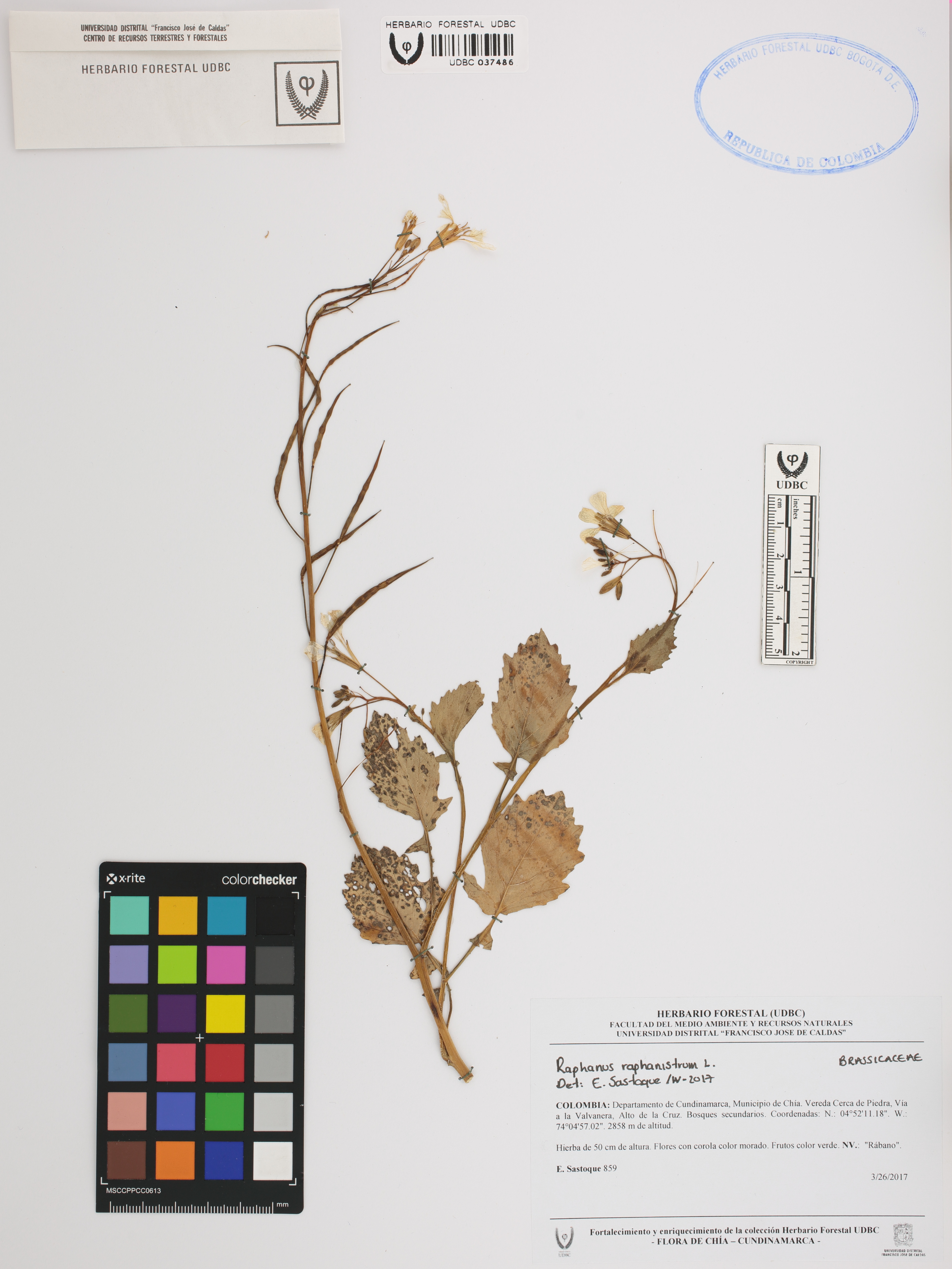 Fotografía del ejemplar Sastoque, E. 859, determinado como Raphanus raphanistrum en el año 2017