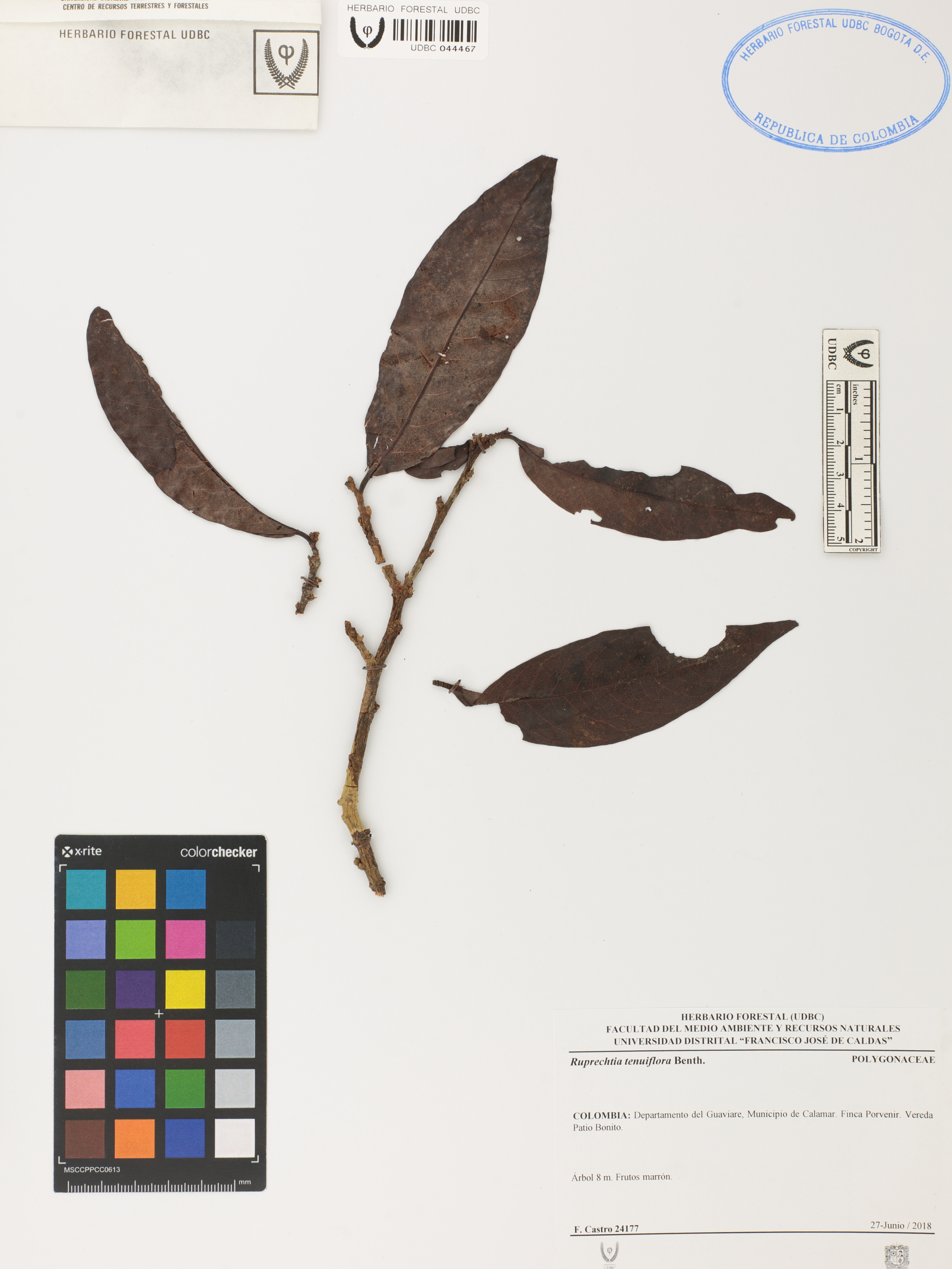 Fotografía del ejemplar Castro, F. 24177, determinado como Ruprechtia tenuiflora en el año 2018
