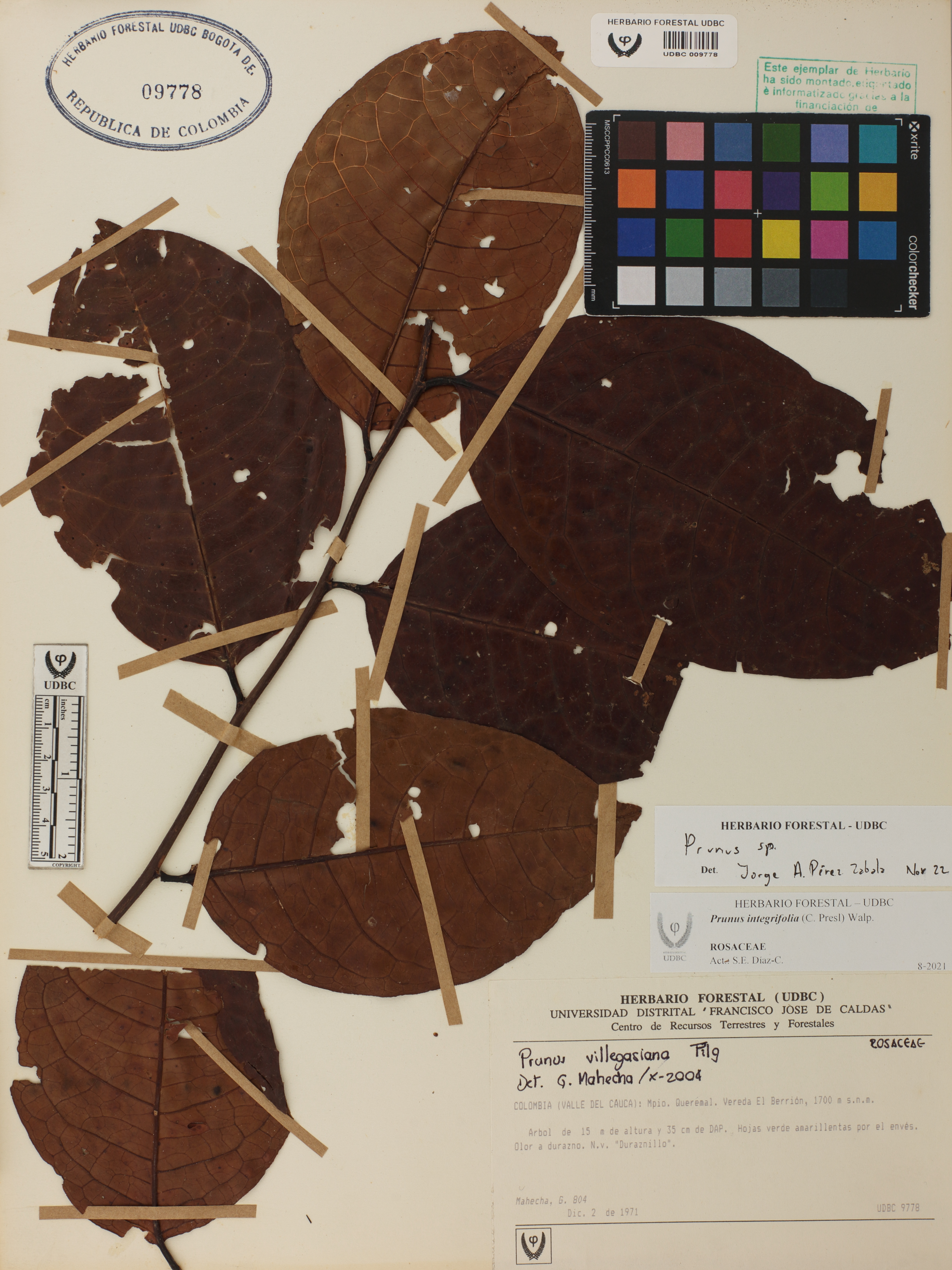 Fotografía del ejemplar Mahecha, G. 804, determinado como Prunus sp. en el año 2022